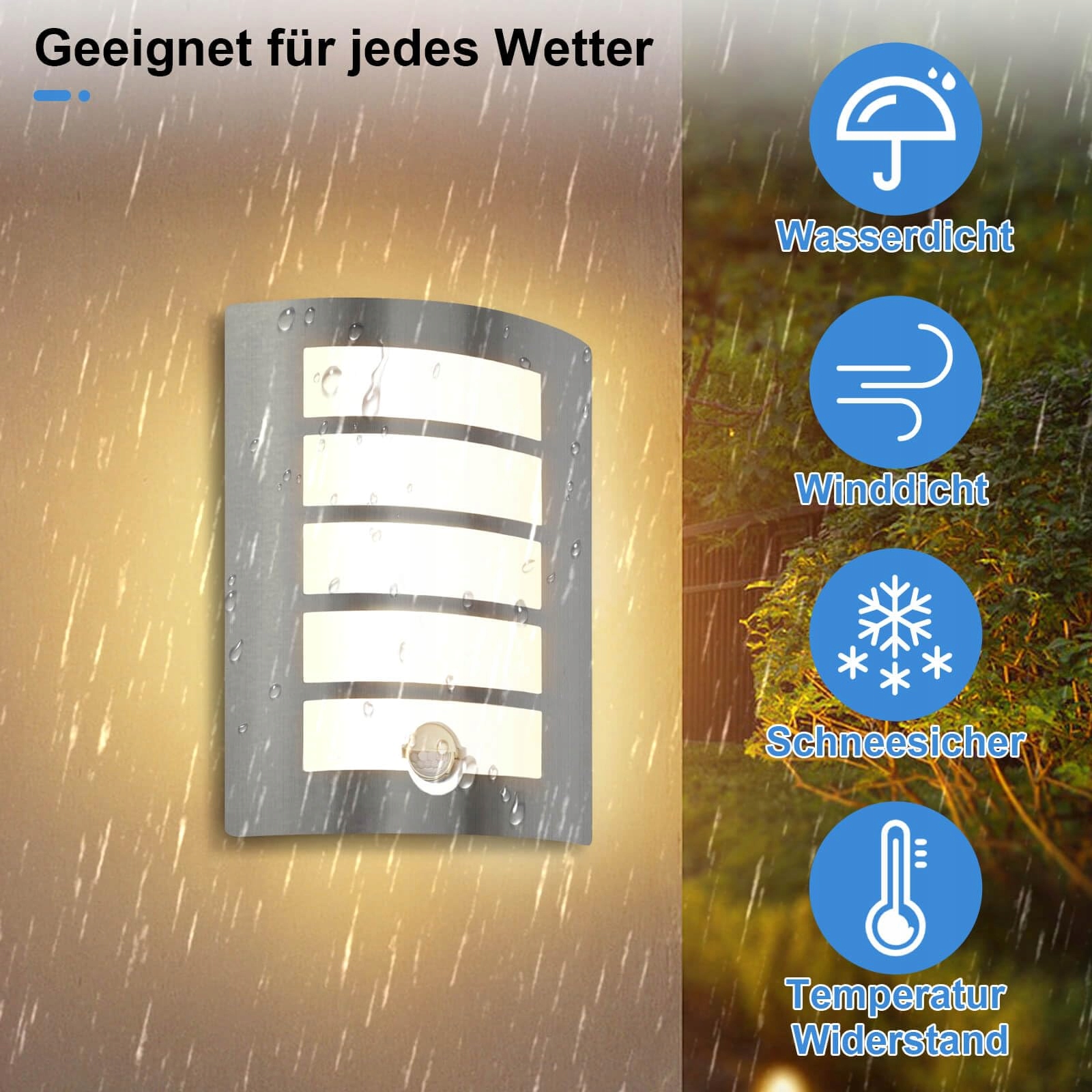 【Zasilanie sieciowe i stabilna wydajność】Lampa zewnętrzna działa na AC 230V, łatwy montaż bez transformatora. W porównaniu do lamp solarnych, które działają tylko w słoneczne dni, ta lampa z czujnikiem ruchu jest bardziej stabilna i nie jest zależna od warunków pogodowych.