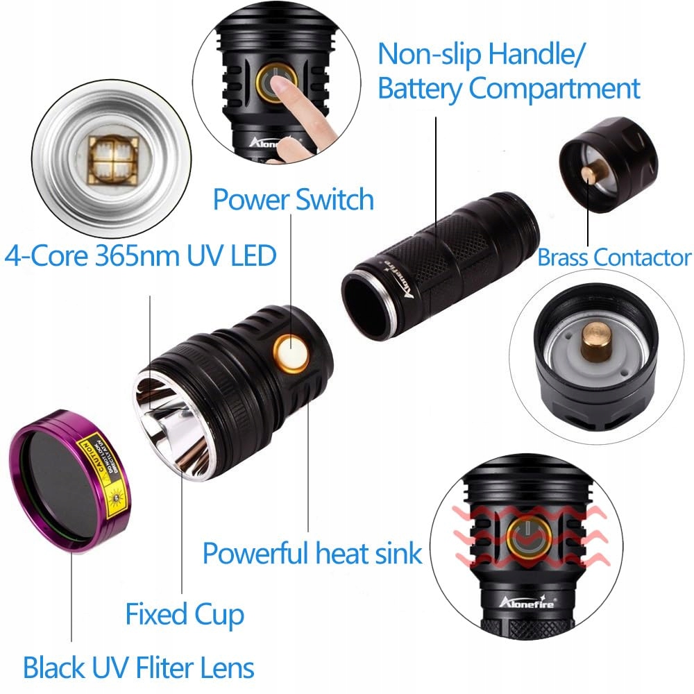 ALONEFIRE SV18 12W Latarka UV 365nm USB Czarna Detektor Uryny Zwierząt | Premium Supply