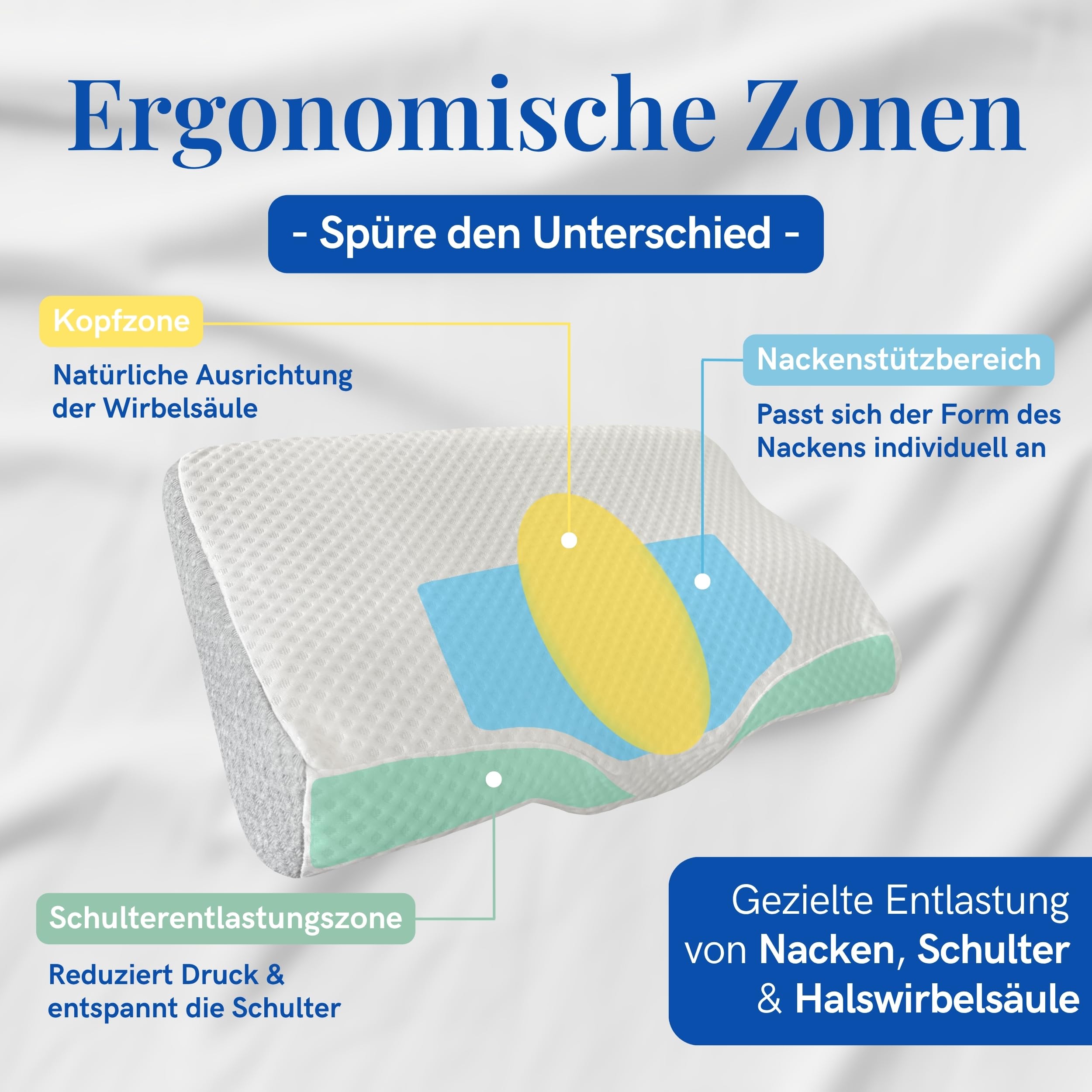✅ DOPASOWUJĄCA SIĘ PIANKA MEMORY: Lepka pianka memory idealnie dopasowuje się do twojej głowy i szyi, wspierając naturalne ułożenie kręgosłupa - dla bezbolesnego budzenia się bez bólu szyi.