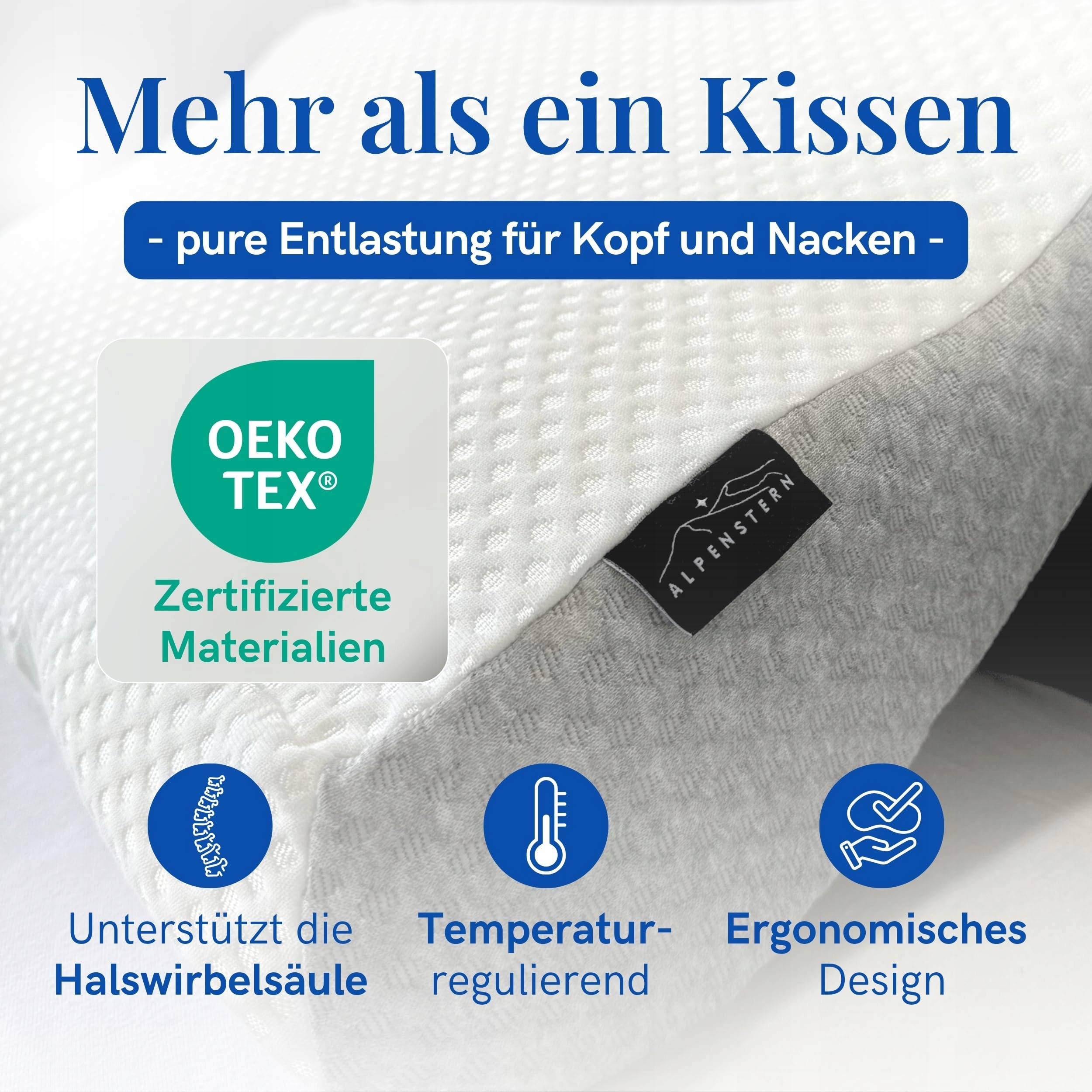 Alpenstern® Ortodontyczna poduszka pod kark z pianki memory Poduszka ergonomiczna na ból szyi Poduszka do spania na plecach, brzuchu, boku - z pokrowcem (poduszka)