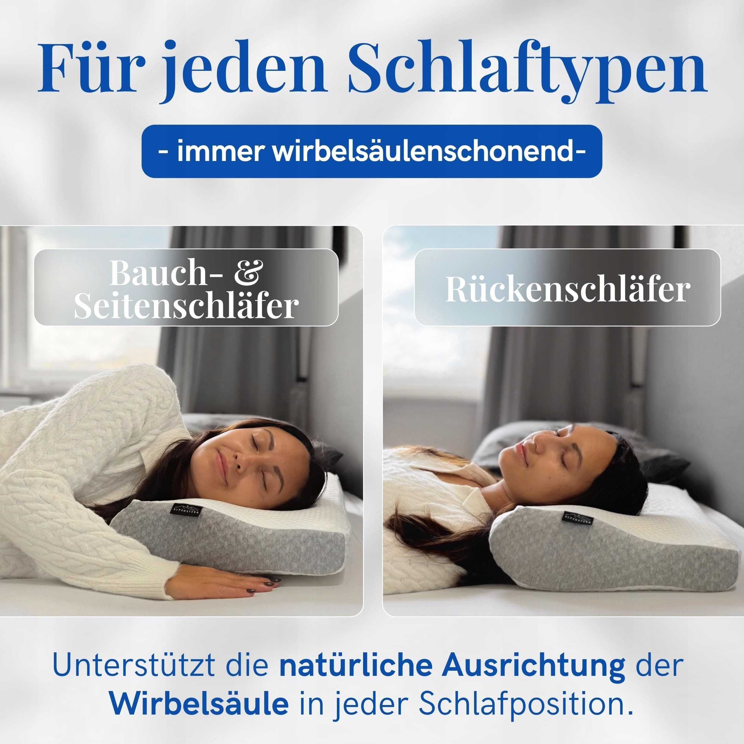 🌙 DLA LEPSZEGO SNU: Poduszka z pianki memory od Alpenstern służy również jako poduszka antychrapaniowa. Wspiera fazę głębokiego snu i pomaga utrzymać prawidłową pozycję głowy podczas chrapania lub bezdechu sennego.