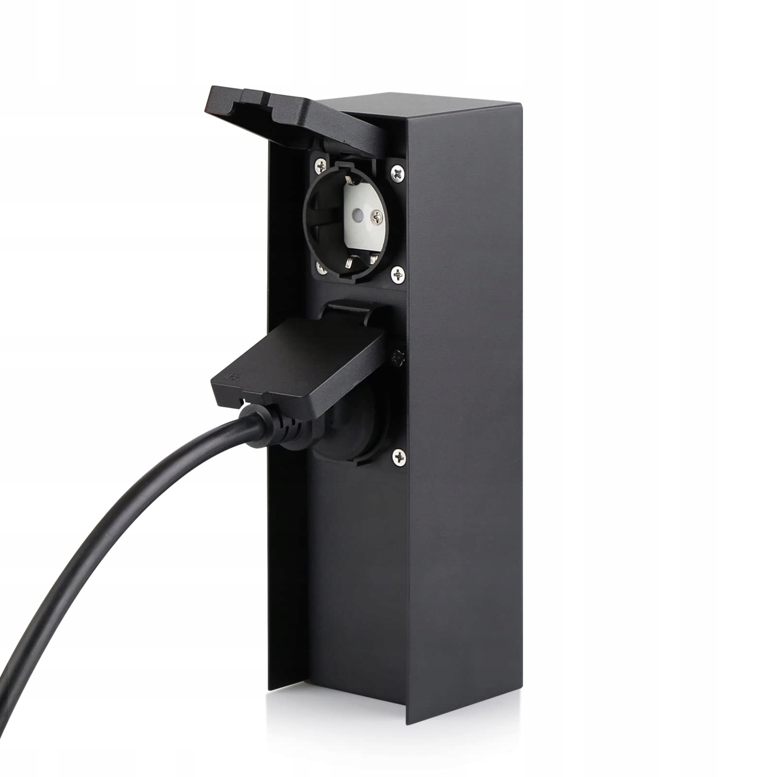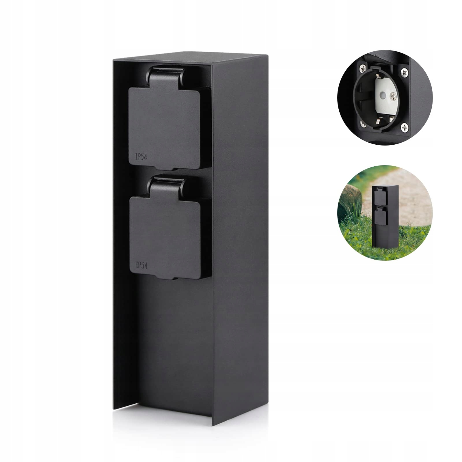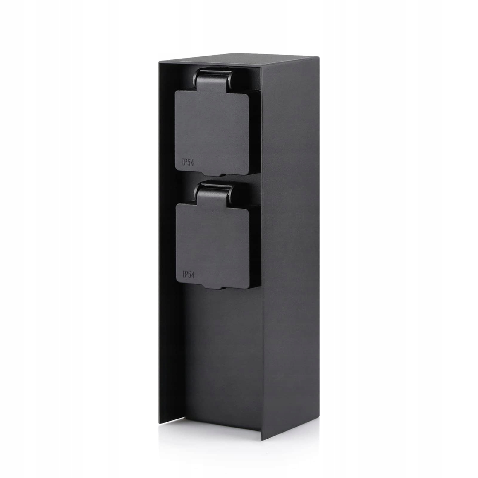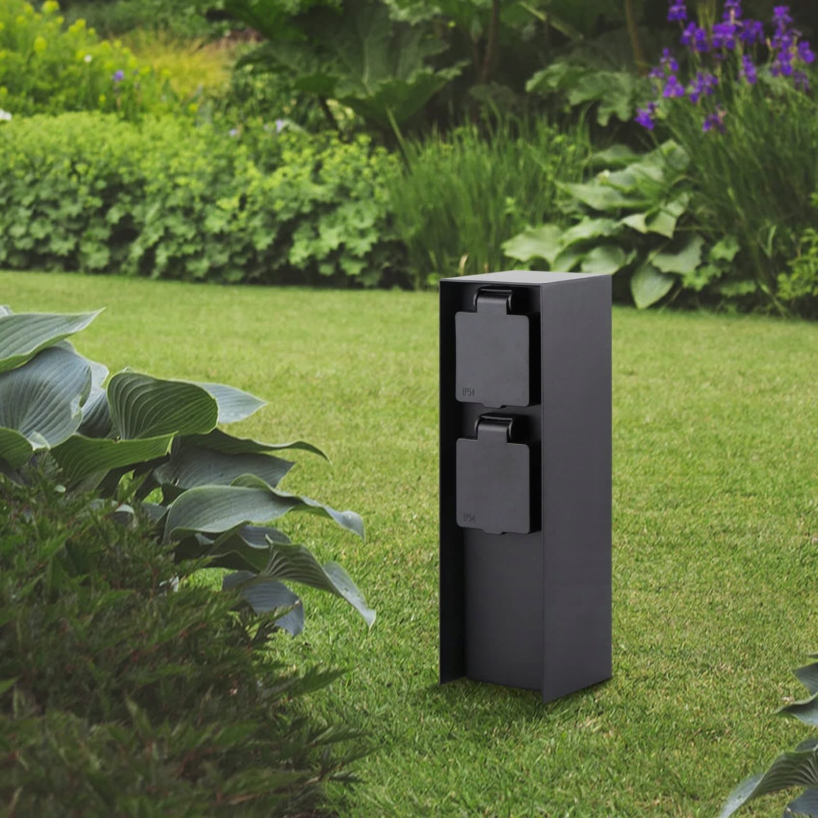 Słup ogrodowy z 2 gniazdami, max. 3680W, IP44, aluminiowe gniazdo zewnętrzne, do użytku na zewnątrz - kwadratowe czarne