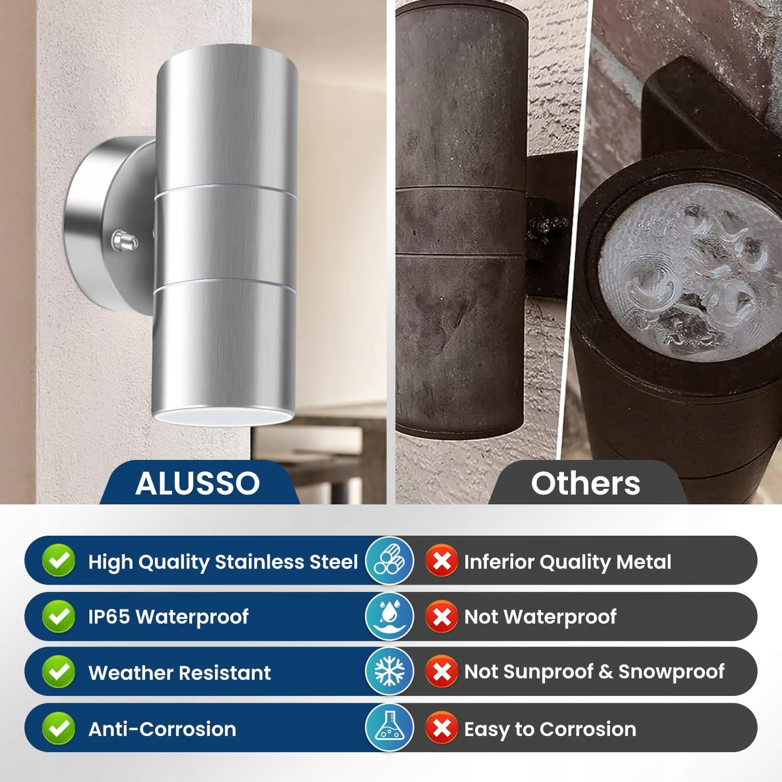 ✨【Szerokie zastosowanie lampy zewnętrznej】 - Dolny wylot światła lampy ściennej może pokazać doskonały efekt świetlny i stworzyć przyjemną atmosferę. Oświetlenie zewnętrzne ALUSSO jest często stosowane na tarasach, w ogrodach, na balkonach, werandach i w garażach.