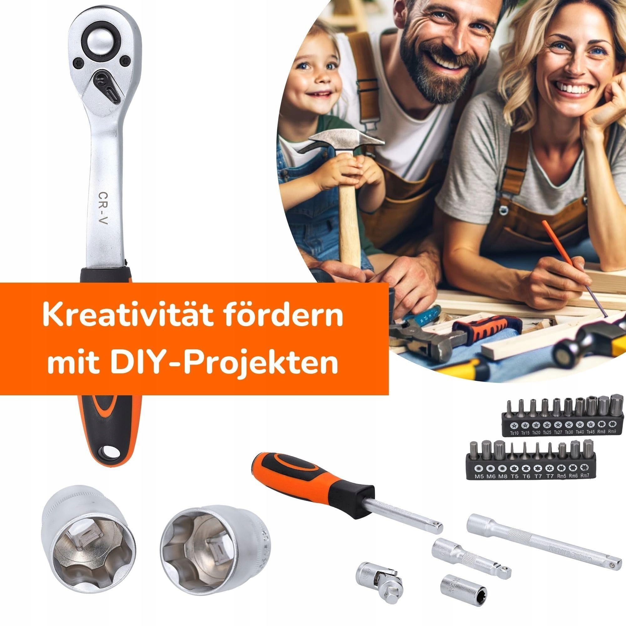 Duży zestaw kluczy nasadowych: Nasz zestaw narzędzi zawiera 171 narzędzi i jest idealny do prawie wszystkich Twoich potrzeb.