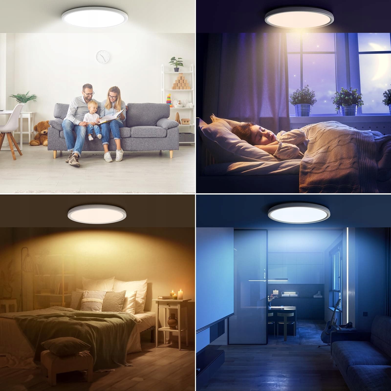 Niezależnie od tego, czy potrzebujesz jasnego światła do pracy i czytania, czy ciepłego, delikatnego światła do relaksu i odpoczynku, ta lampa sufitowa oferuje Ci kompleksowy wybór temperatury barwowej.