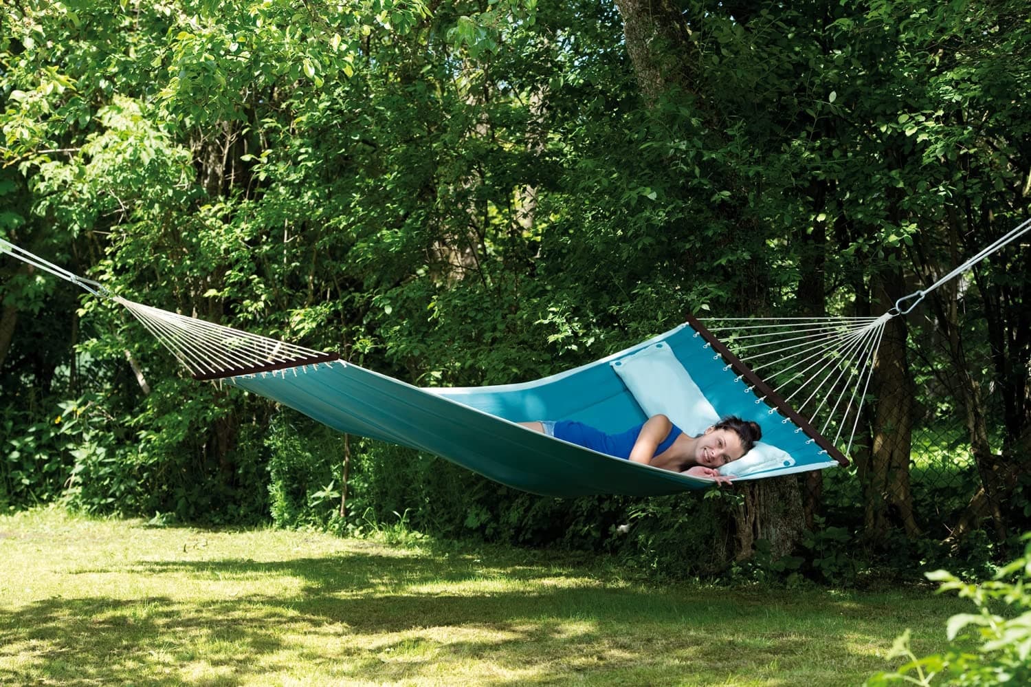 AMAZONAS XL Hamak American Dream Premium Stabhängematte Dla 2 Osób Z Poduszką 200x120cm Do 180kg Petrol