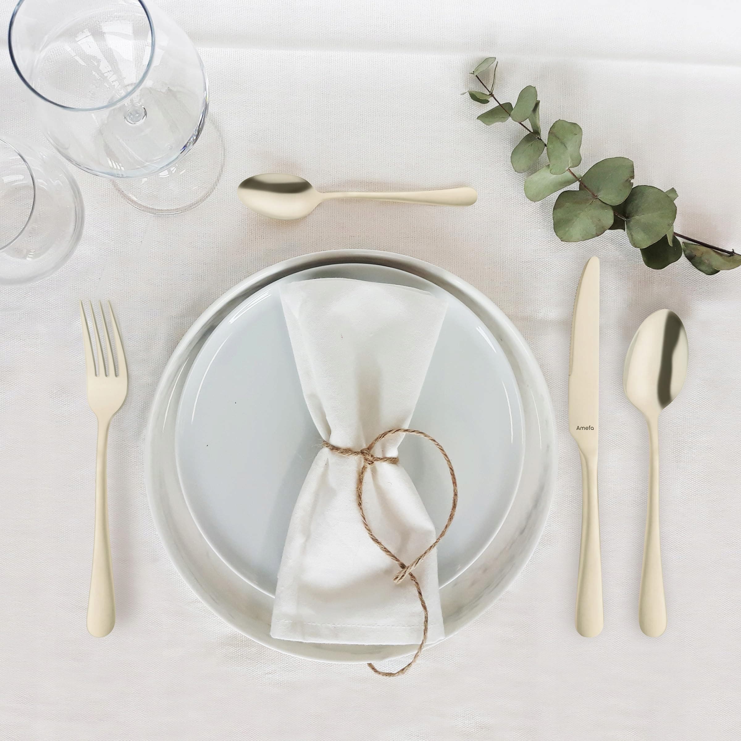 Amefa AUSTIN CHAMPAGNER Zestaw sztućców 24-częściowy | Złoty zestaw sztućców z powłoką PVD | kolorowy zestaw naczyń 18/0 stal nierdzewna nierdzewna | Zestaw sztućców dla 6 osób | Złote sztućce odporne na zmywarkę