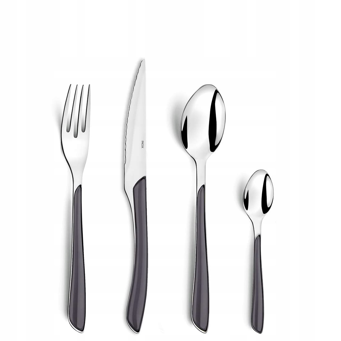 Zestaw sztućców Amefa ECLAT Szary 24-elementowy dla 6 osób ze stali nierdzewnej, uchwyty z wysokiej jakości tworzywa sztucznego, nadający się do zmywarki, zestaw sztućców dla 6 osób