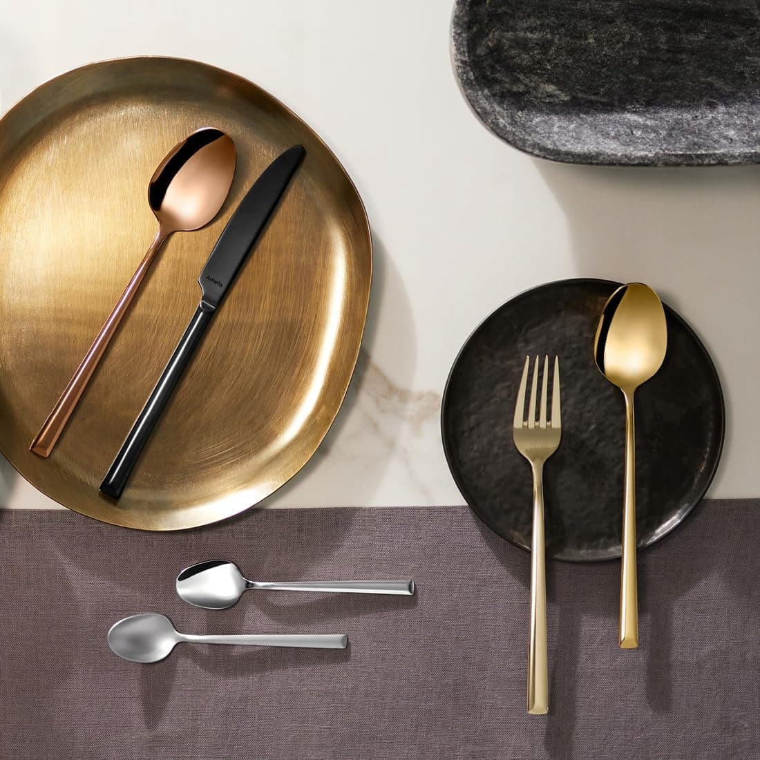 SZTUCZKI METROPOLE. Purystyczna elegancja, wyraźna linia i subtelnie ścięte końcówki rączek charakteryzują język form tego zestawu sztućców.