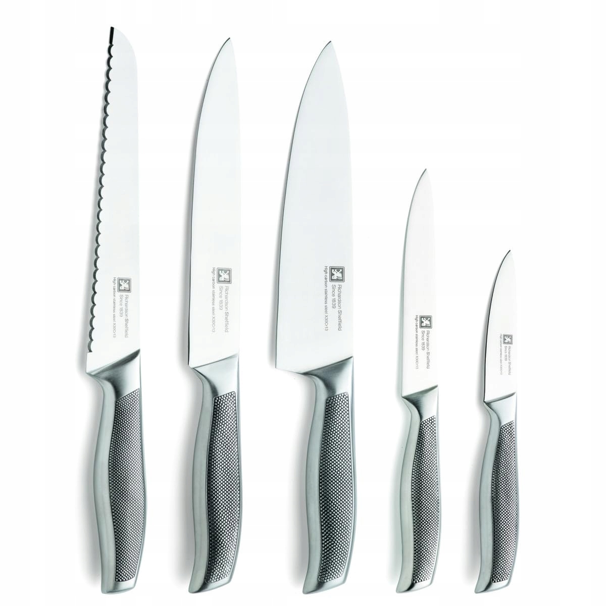 RICHARDSON SHEFFIELD SENSE BLOK NA NOŻE | w zestawie 5 noży | z drewna sosnowego | łatwe wyjmowanie | antypoślizgowe uchwyty z mikrostrukturą | zestaw noży kuchennych | zestaw noży z blokiem | 36 x 25 x 9 cm