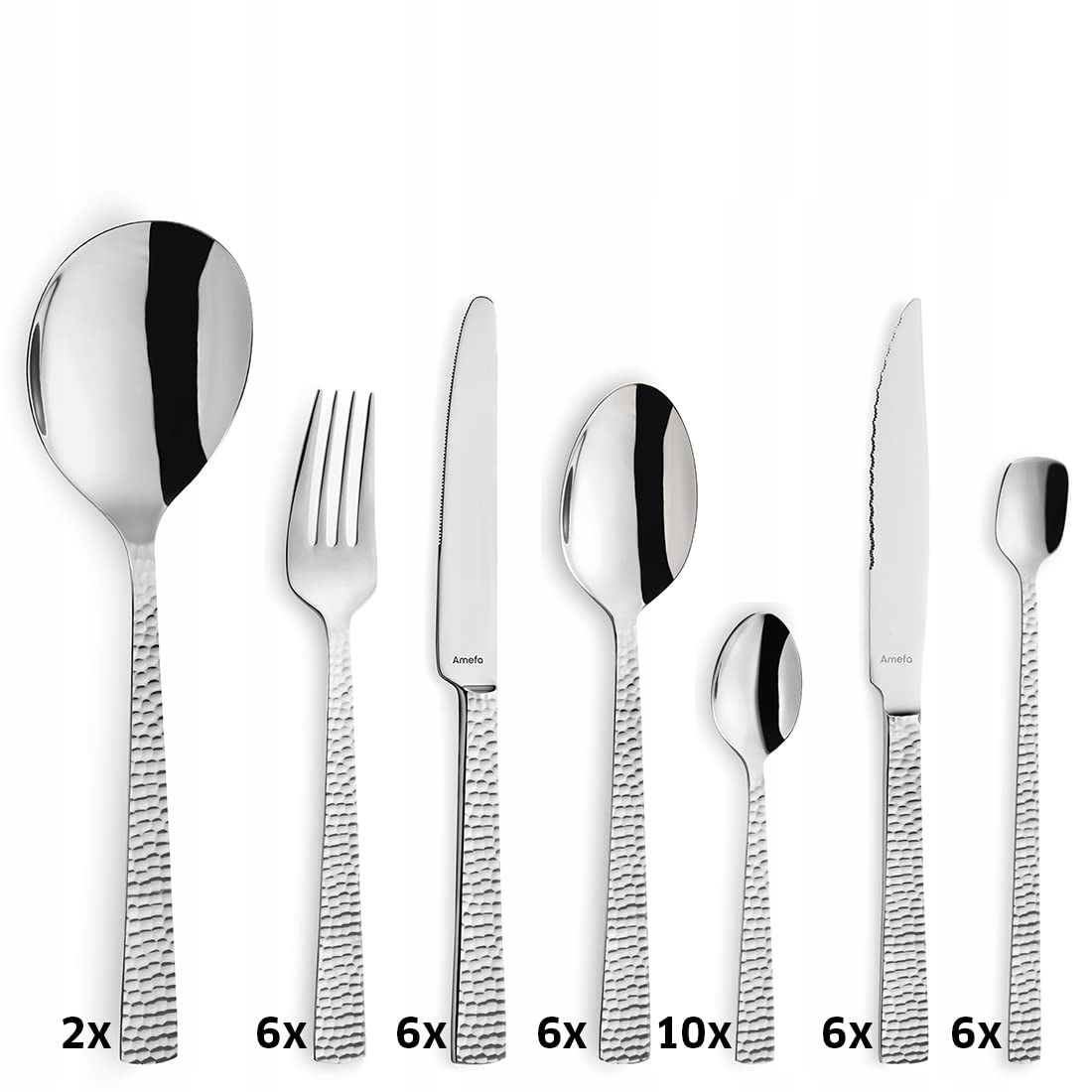 Zestaw sztućców Amefa 42-elementowy FELICITY | Wysoki połysk | Nadaje się do zmywarki | Stal nierdzewna 18/0 | Stal klingenowa 13/0 | Młotkowany uchwyt | Zestaw sztućców dla 6 osób