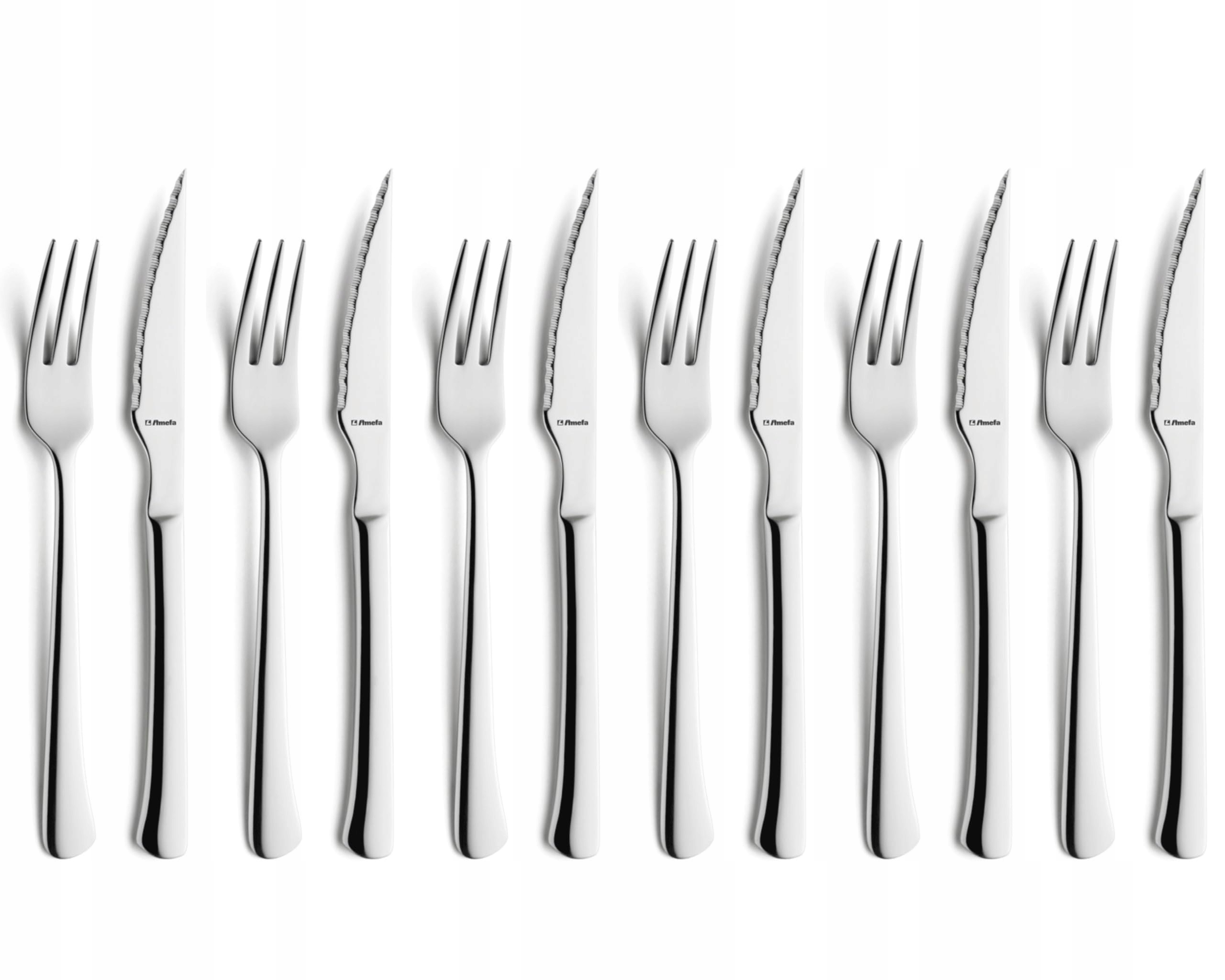 ZESTAW SZTUĆCÓW: 12-częściowy zestaw sztućców do steków, dla 6 osób, składający się z: 6x noży do steków, 6x widelców do steków w eleganckim opakowaniu.