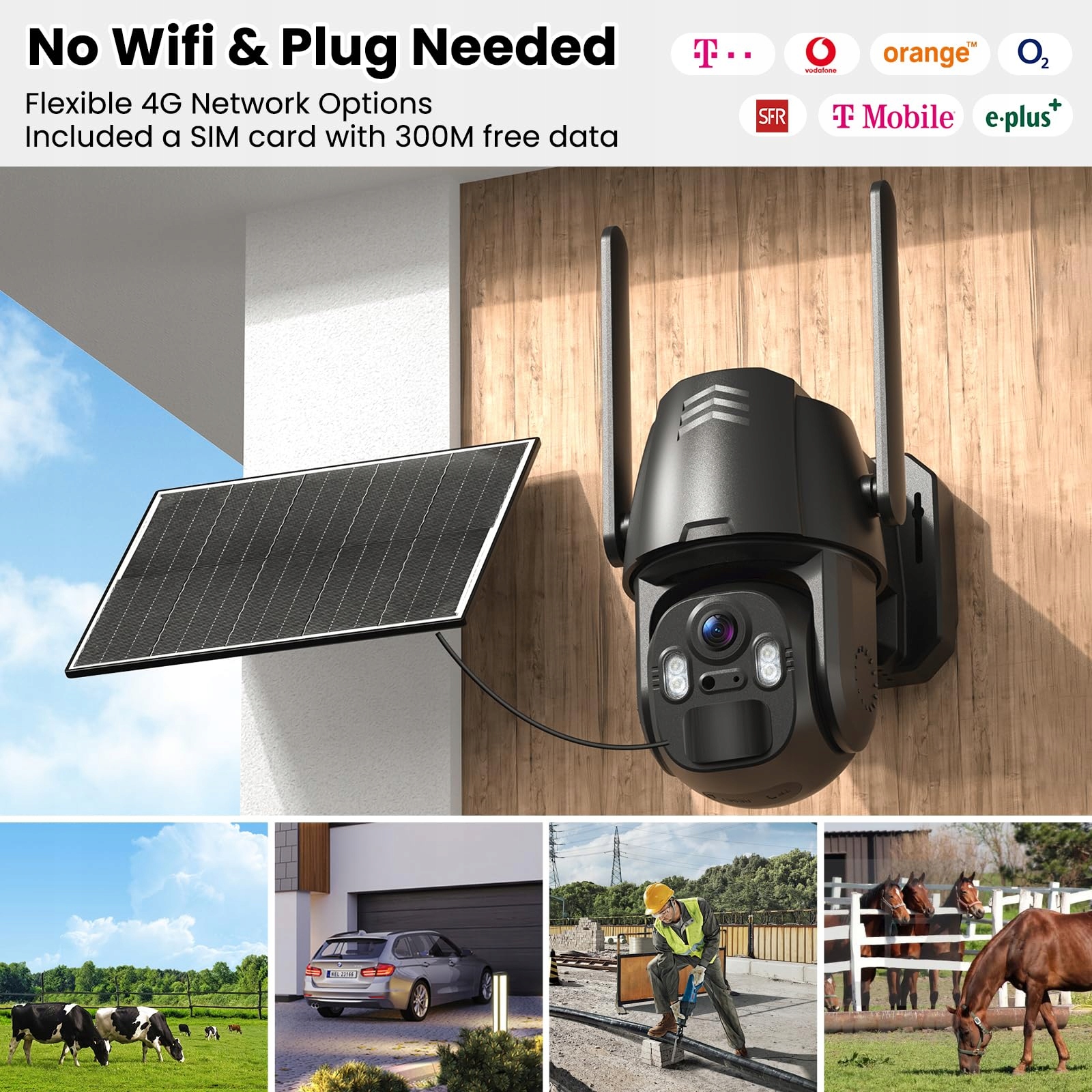 【Łączność 4G LTE】Nie wymaga Wi-Fi. Idealna na farmy, place budowy i domki letniskowe. W zestawie karta SIM (300 MB kredytu testowego) do natychmiastowego monitoringu zdalnego przez sieci komórkowe.