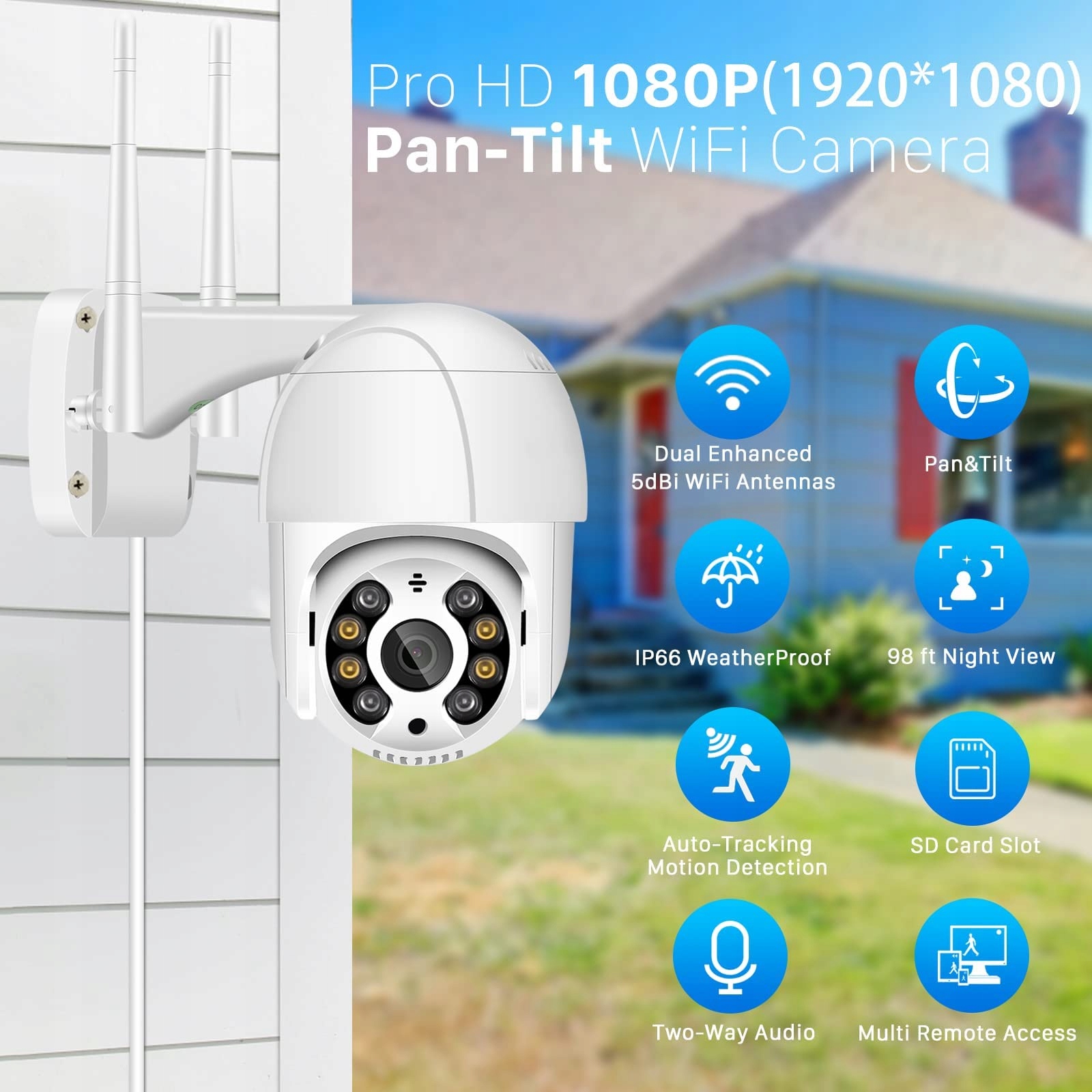 【Widok dla wielu użytkowników i wodoodporność IP66】Kamera PTZ outdoor IP obsługuje podgląd online dla wielu użytkowników jednocześnie; możesz dzielić się szczęśliwymi chwilami z członkami rodziny lub przyjaciółmi. Ta kamera monitoringu zewnętrznego jest wyposażona w obudowę odporną na warunki atmosferyczne IP66, która działa dobrze nawet w ekstremalnych warunkach pogodowych.