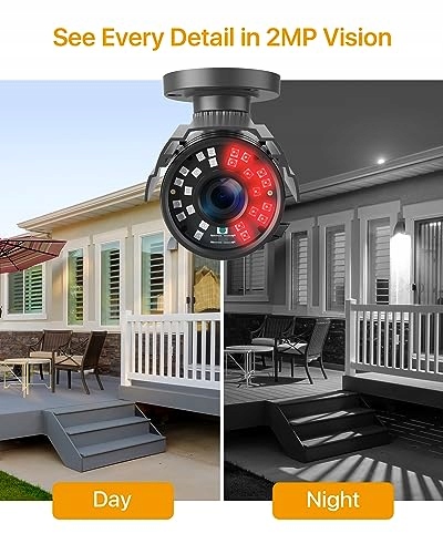 【Kamera monitoringu 1080p】 Uchwyć wszystkie szczegóły w jakości 1080p HD. 2MP (1920x1080px) oferuje 100% wzrost pikseli w porównaniu do 1MP (720p HD) i zapewnia najwyższą ostrość widzenia oraz kolor, aby chronić Twój dom lub firmę.