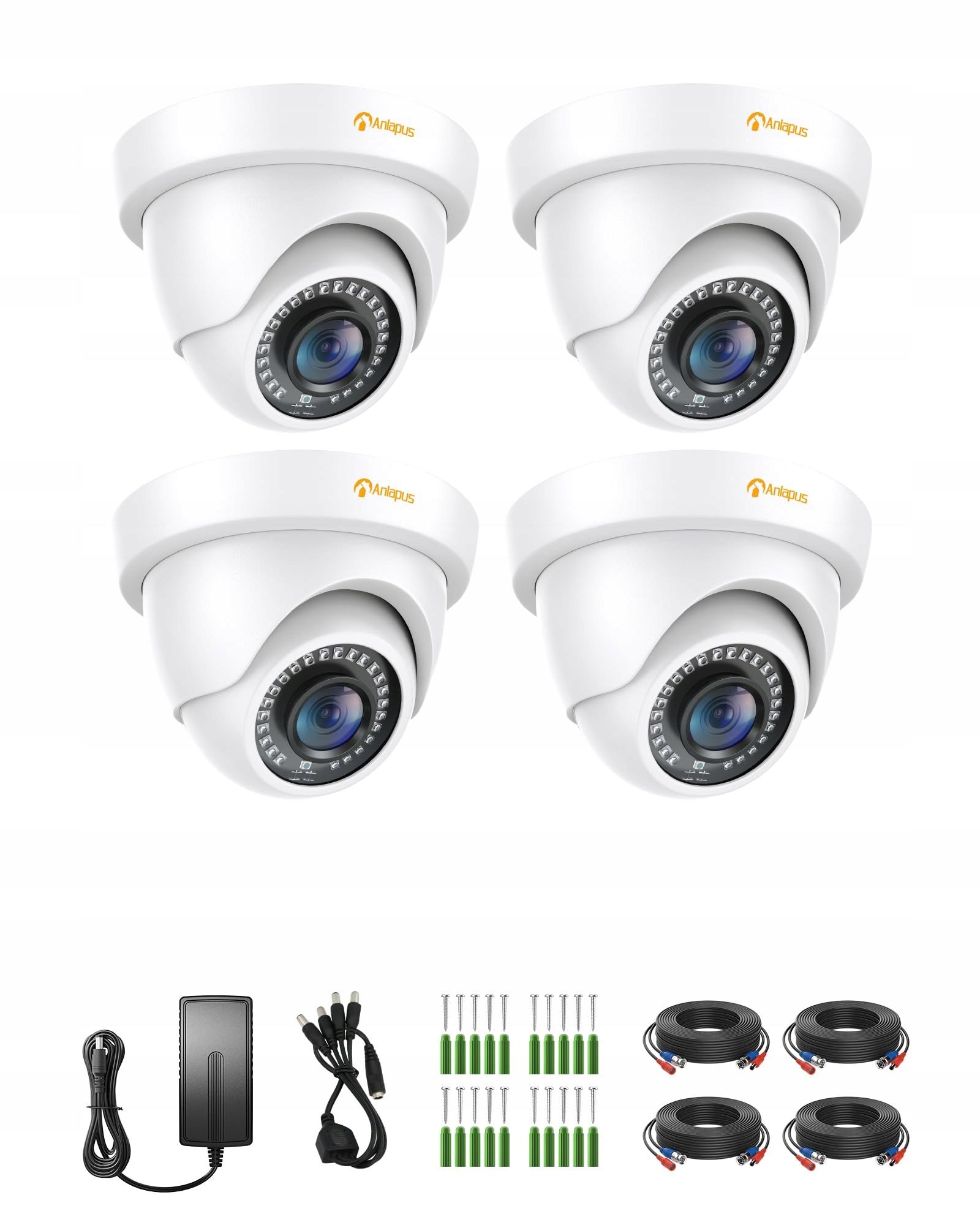 ANLAPUS Zestaw 4X 1080P Zewnętrzne Kamery Kopułkowe z Zasilaczem i Kablami | Premium Supply