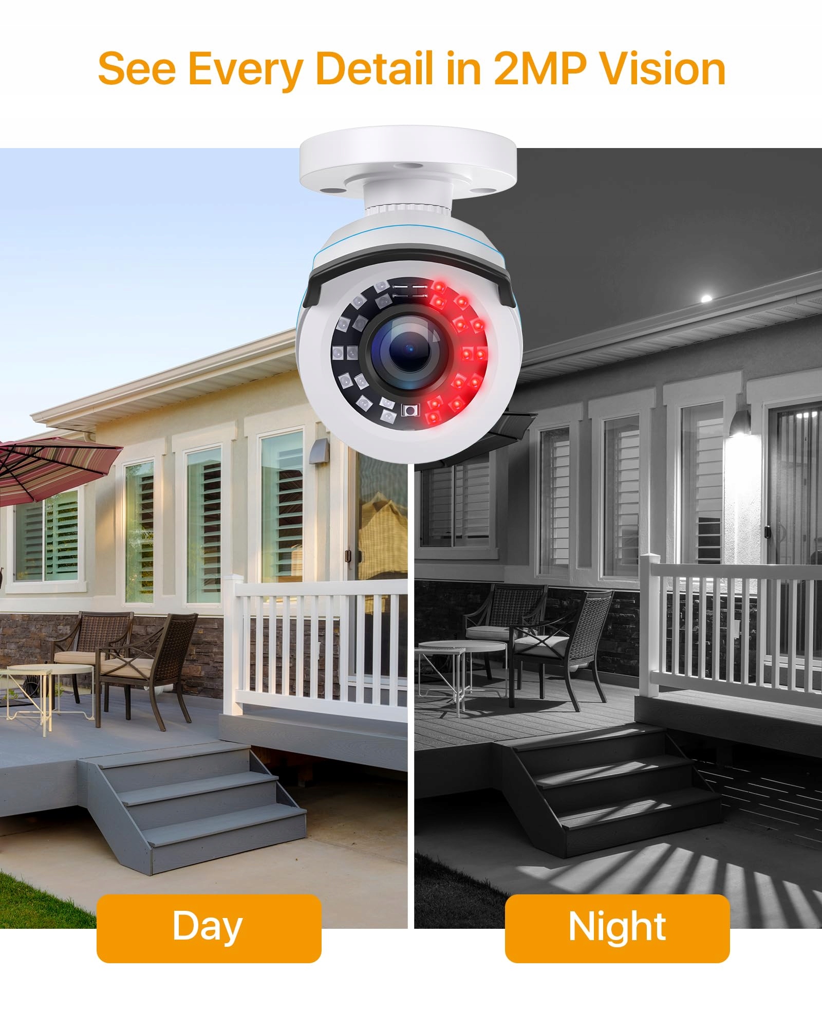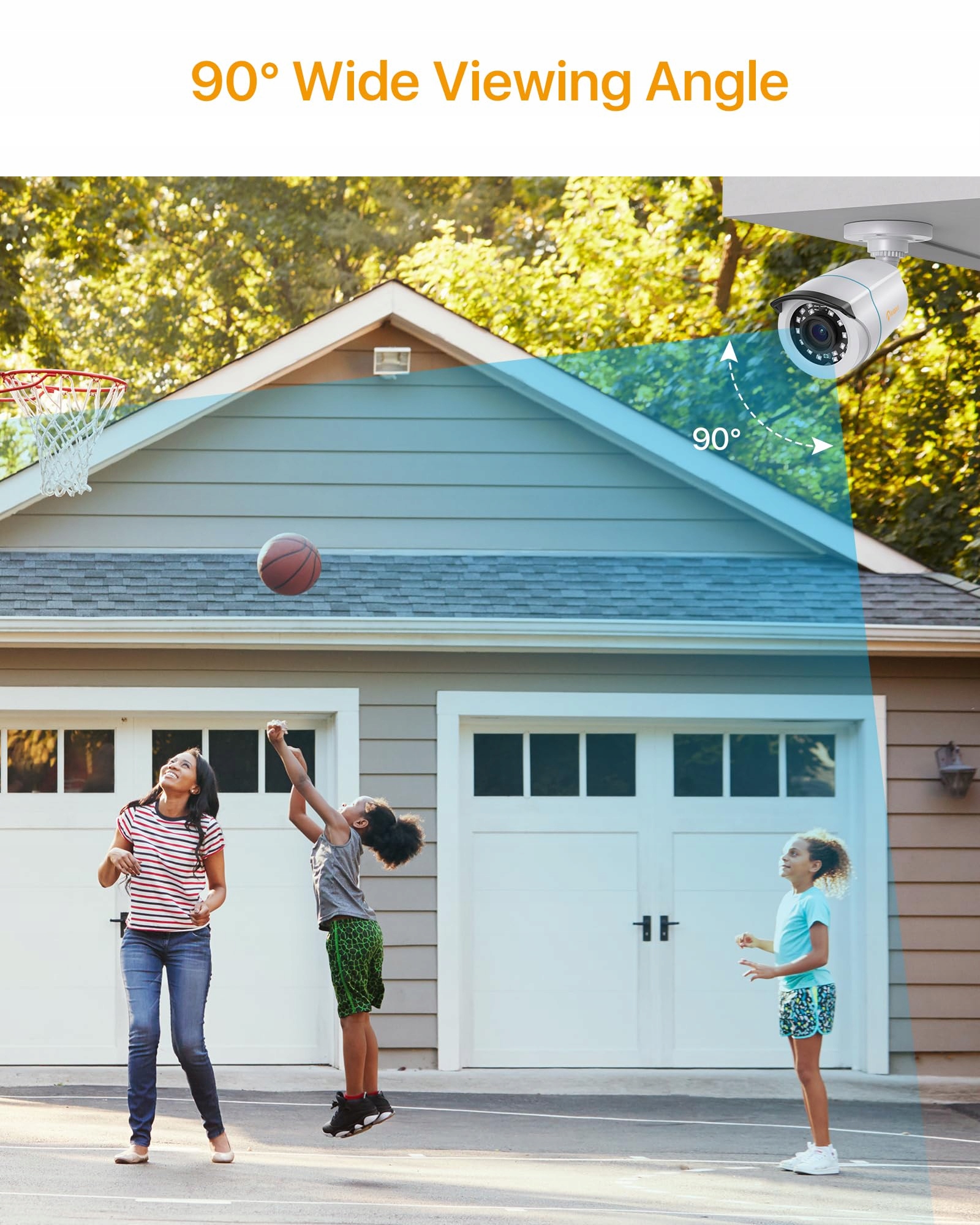 【Full HD wideo】Wyposażona w 2MP sensor CMOS i obiektyw kamery HD 3,6 mm, ta kamera oferuje kąt widzenia 90 stopni oraz ostry obraz w FHD 1080P.