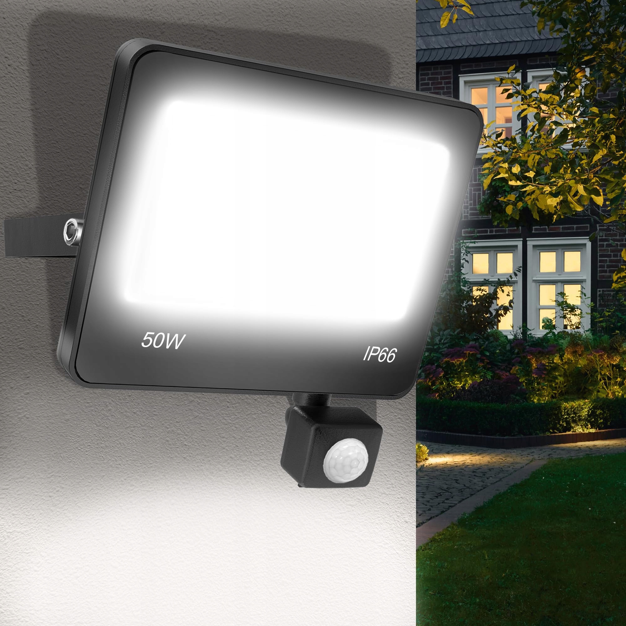 ANNIFUNLY LED Reflektor z czujnikiem ruchu na zewnątrz, 50W 5000LM Superjasny reflektor zewnętrzny 6500K zimna biel LED Floodlight lampa zewnętrzna IP66 wodoodporna lampa zewnętrzna reflektor do garażu, ogrodu, podwórka