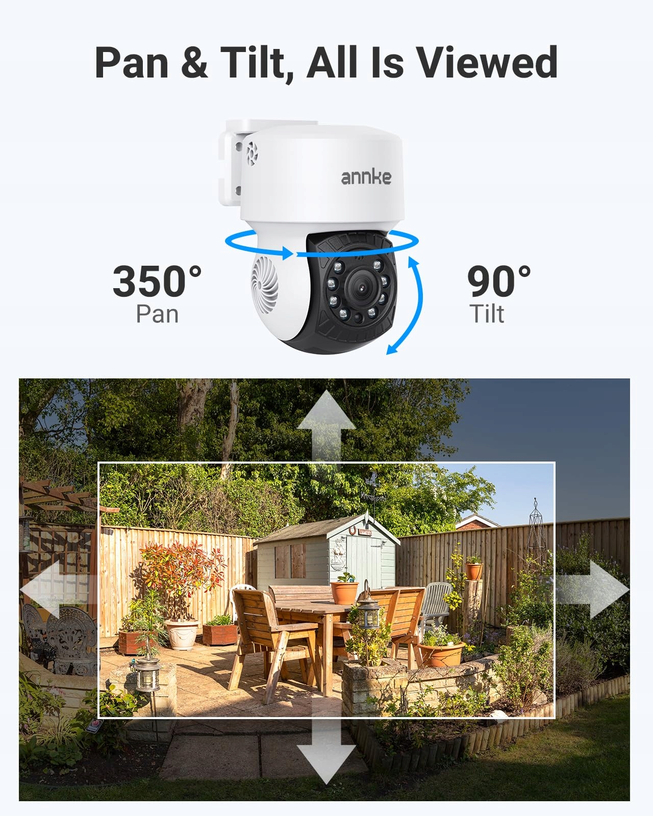 360° całkowite bezpieczeństwo: Dzięki funkcjom obrotu 350° i nachylenia 90° ta kamera może monitorować większy obszar niż tradycyjne kamery ustawione na stały kąt. Jeszcze wygodniej – możesz obracać i pochylać kamerę za pomocą rejestratora DVR lub aplikacji DVR na telefonie.