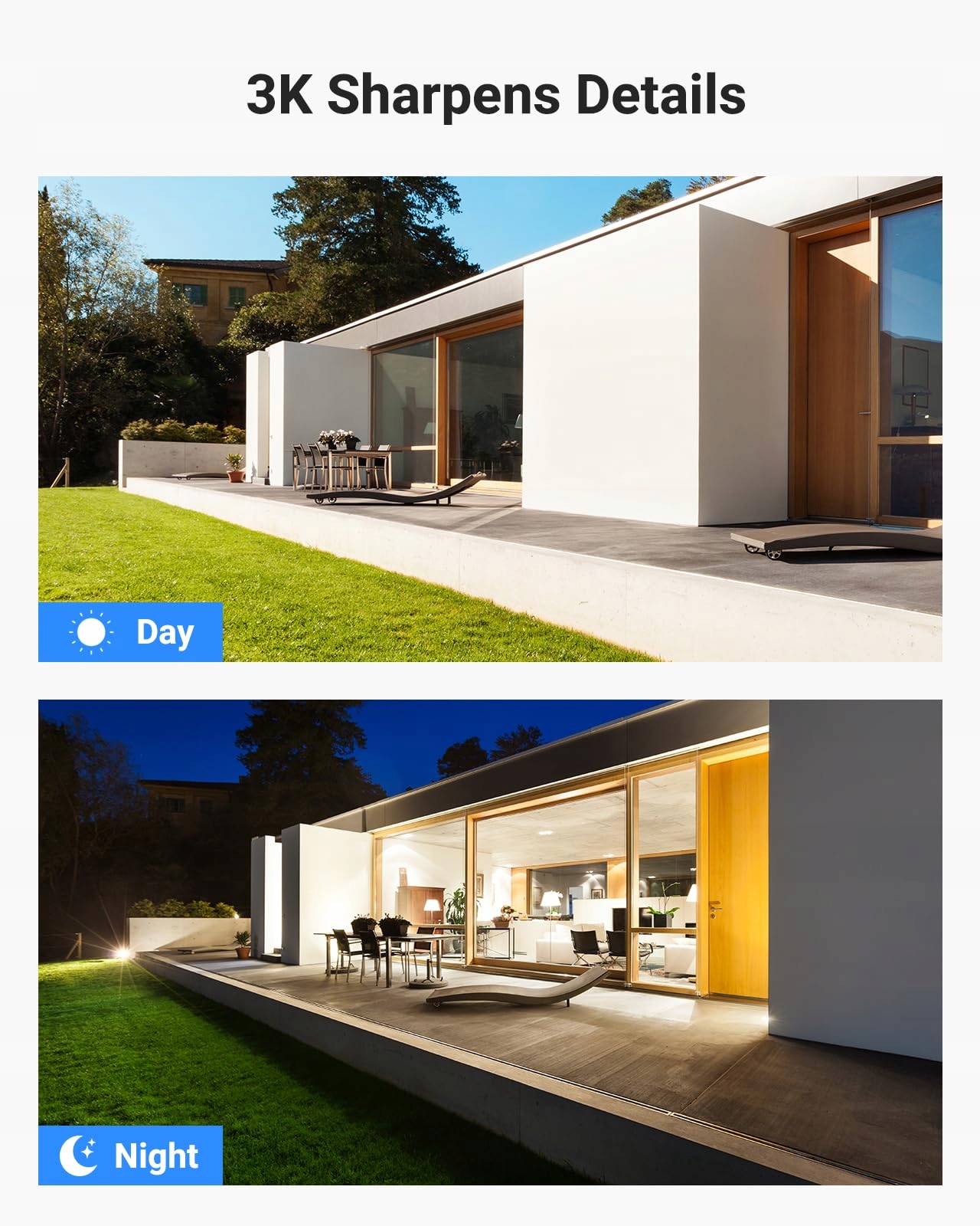 【Prawdziwy 5MP Super HD obraz dzień i noc】Kamera IP PoE z czujnikiem OmniVision i technologią EXIR 2.0 rejestruje krystalicznie czyste obrazy Super HD o rozdzielczości 5 megapikseli w dzień i w nocy oraz koloruje widzenie nocne światłem otoczenia. Dzięki 120 dB WDR i 3D DNR możesz nagrywać ostre obrazy bez szumów w każdych warunkach oświetleniowych