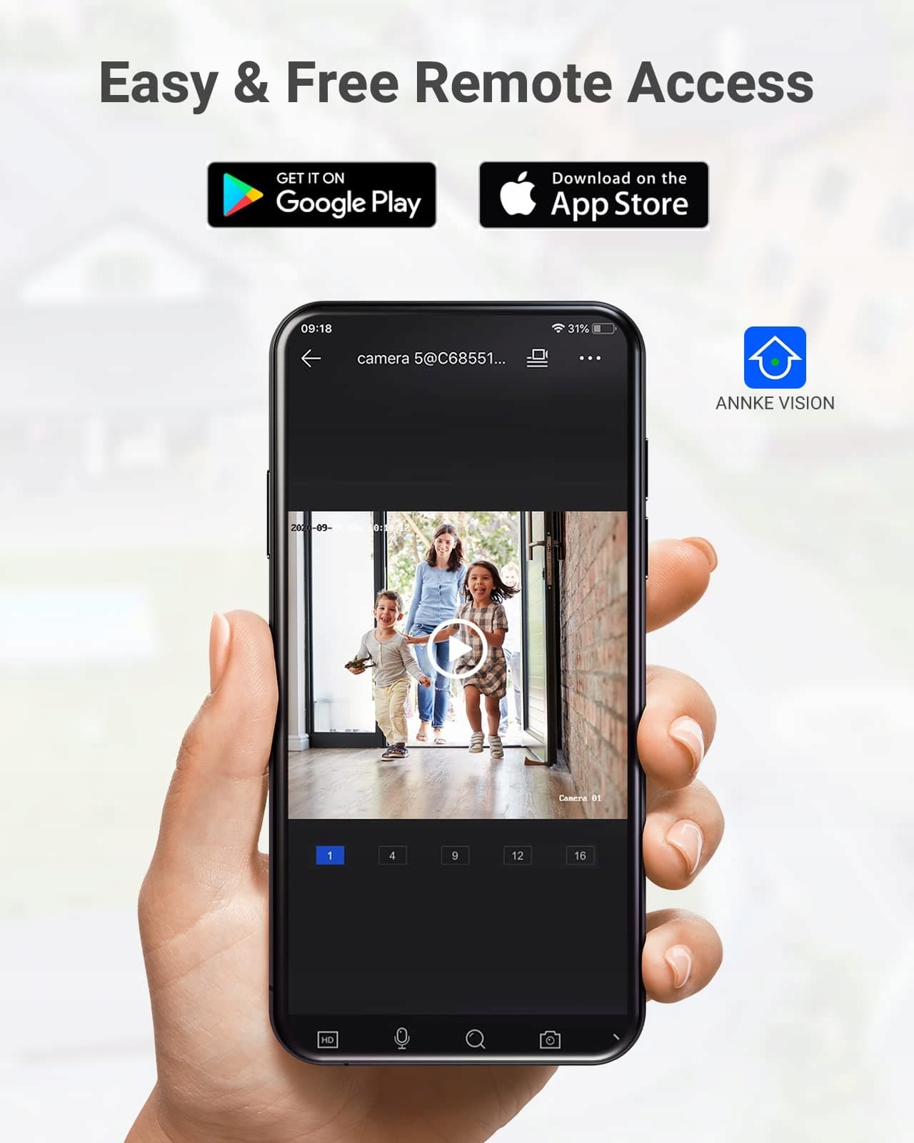 【Zdalny dostęp z darmowym oprogramowaniem】Uzyskaj zdalny dostęp do kamery monitorującej za pomocą telefonów i tabletów przez 3G / 4G / 5G lub Wi-Fi. Dostosuj obszary detekcji, które są dla Ciebie najważniejsze, aby otrzymywać dokładne powiadomienia push w aplikacji lub e-maile, gdy w oznaczonych obszarach wykryte zostaną zdarzenia ruchu