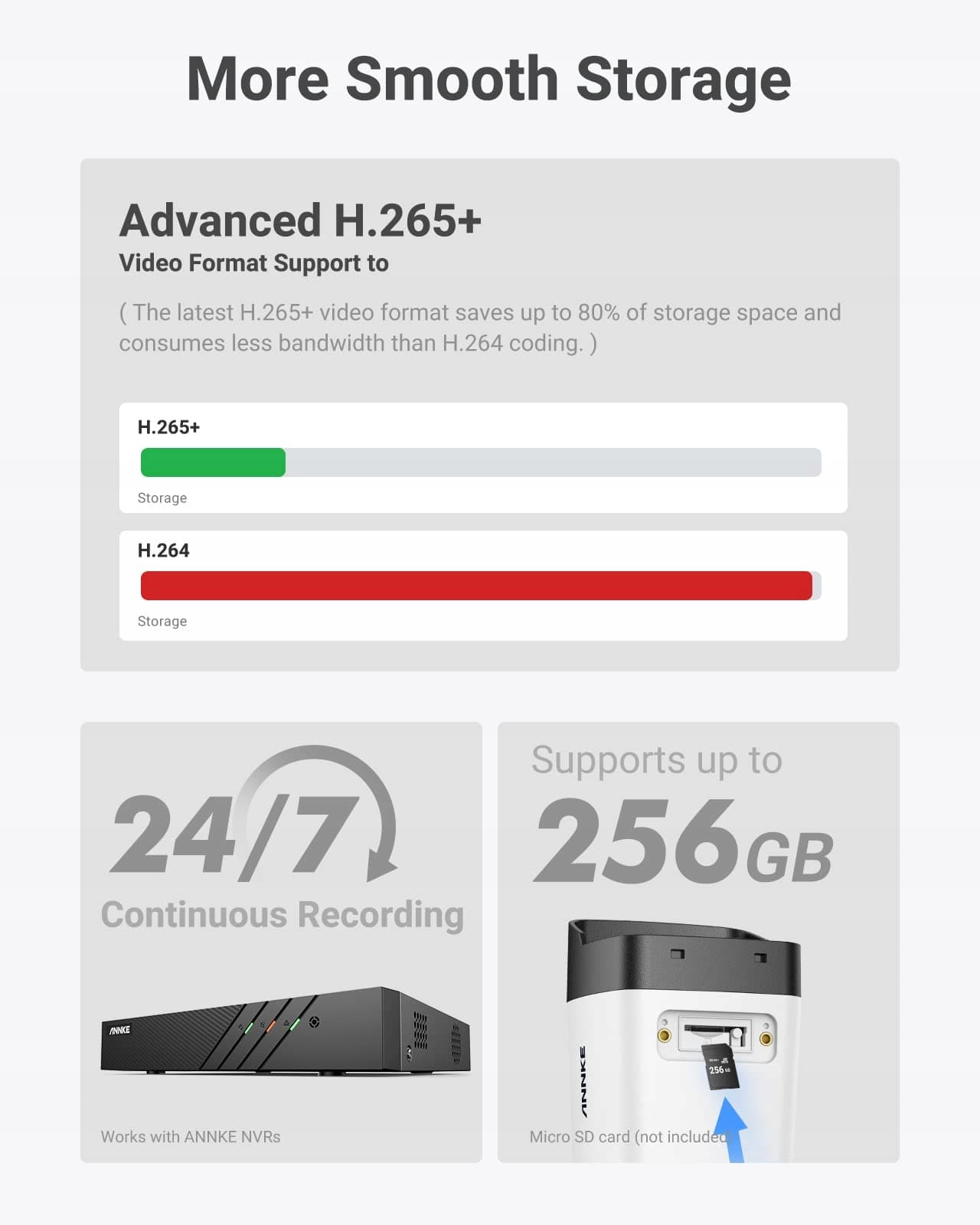 【Najnowocześniejszy strumień H.265 +】Dzięki formatowi wideo H.265 + kamera IP może dostarczać szybsze i płynniejsze filmy. Kamera kompatybilna z ONVIF i RTSP działa ze wszystkimi rejestratorami NVR ANNKE i innych producentów, co pozwala w pełni wykorzystać istniejące rejestratory PoE NVR. Zasilacz to DC12V i nie jest dołączony do produktu