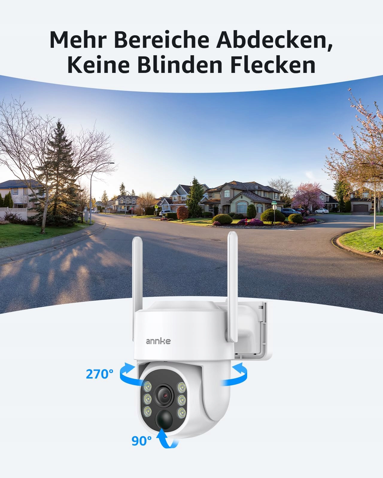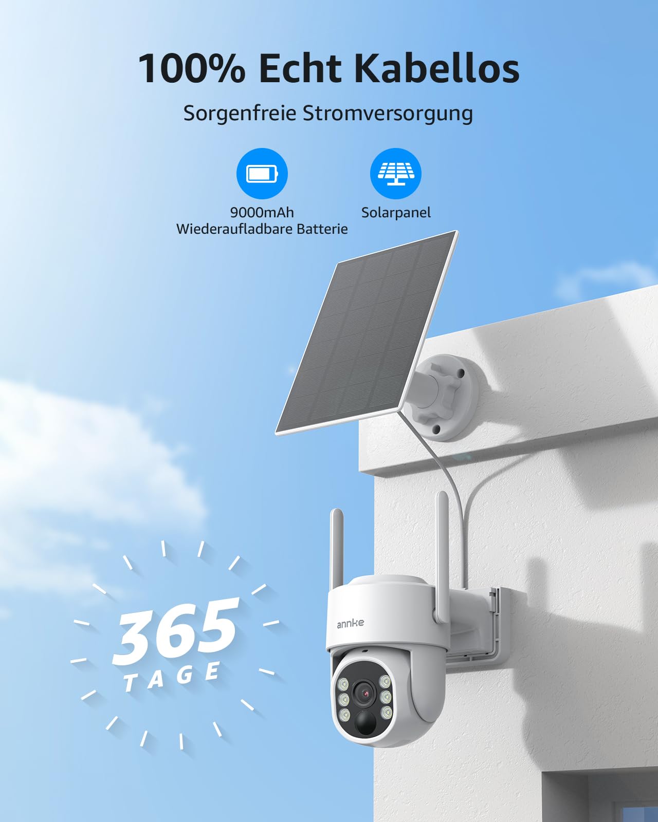 ANNKE 4MP Solarna kamera do monitoringu na zewnątrz z akumulatorem, 360° PT WLAN Kamera Outdoor bezprzewodowa, 2, 4/5GHz WiFi, kolorowa nocna wizja, akumulator 9000 mAh, dwukierunkowe audio, czujnik ruchu PIR, reflektory, kompatybilna z Alexą