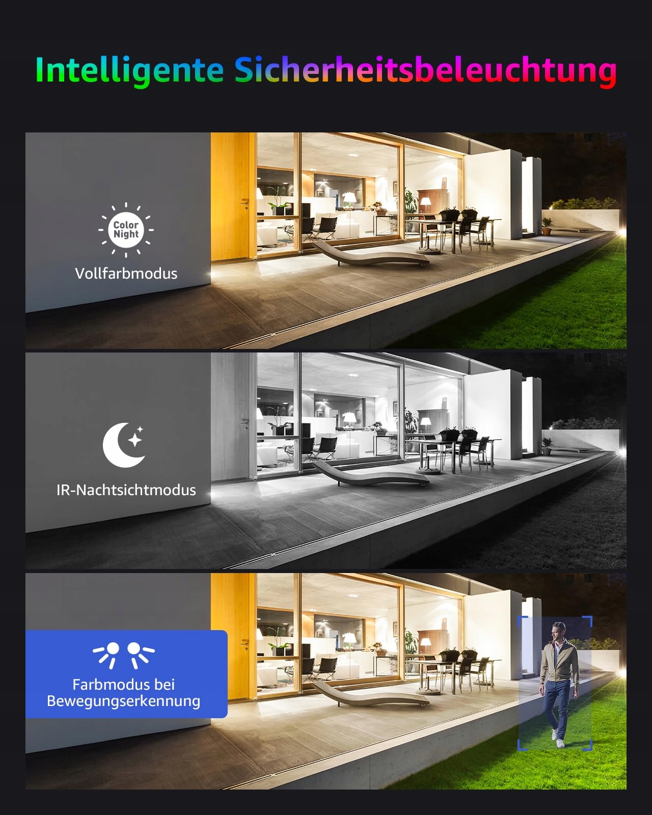 SMART DUAL LIGHT TECHNOLOGIE: Innowacyjne połączenie nocnej wizji IR i trybu pełnokolorowego z wbudowanym oświetleniem LED. Automatyczna zmiana między czarno-białą a kolorową nocną wizją na podstawie wykrywania ruchu lub ustawień użytkownika.