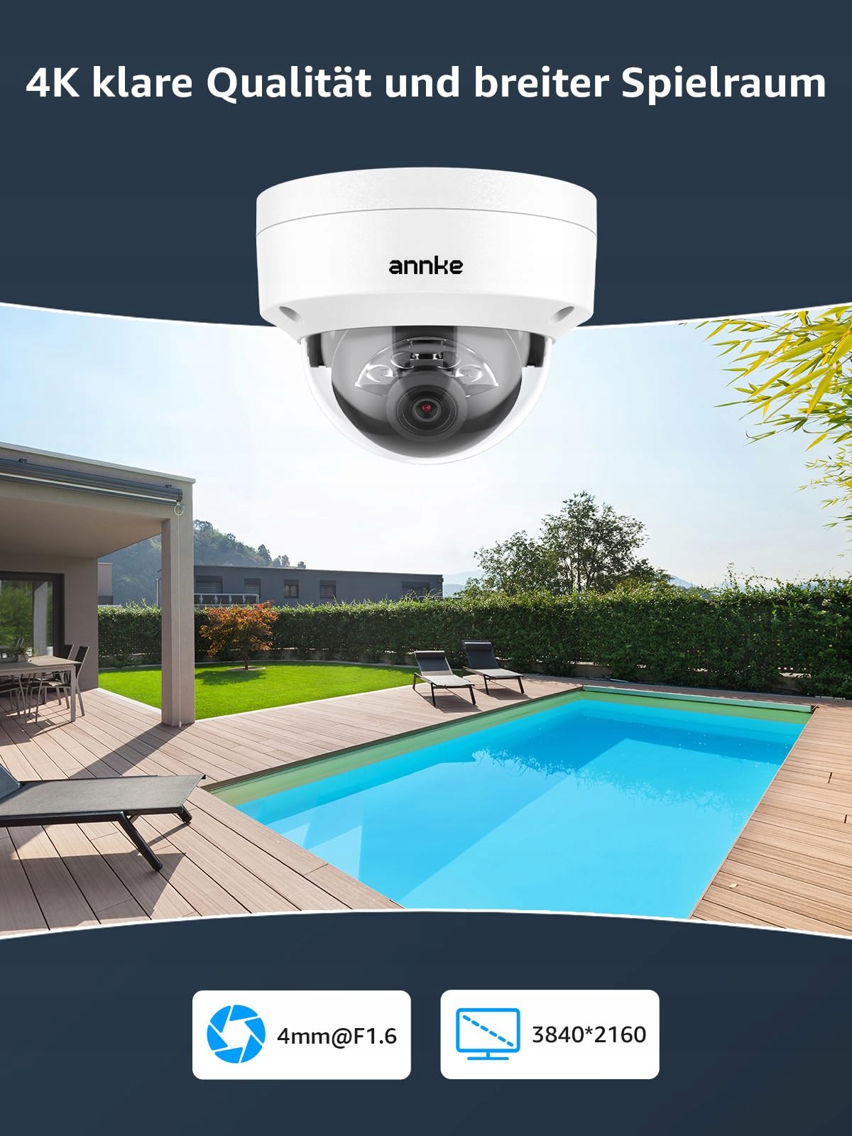 4K Ultra HD – wyjątkowo ostry obraz: Nasze kamery PoE IP oferują doskonałą rozdzielczość (3840 * 2160), dzięki czemu możesz zobaczyć każdy szczegół, a osoby i obiekty są jeszcze lepiej rozpoznawalne. Dzięki naszej zaawansowanej technologii noktowizyjnej ciemne obszary są optymalnie oświetlone. Dzięki temu masz wszystko pod kontrolą nawet w nocy. Każda kamera umożliwia noktowizję do 30 metrów i oferuje imponujący kąt widzenia 102°.