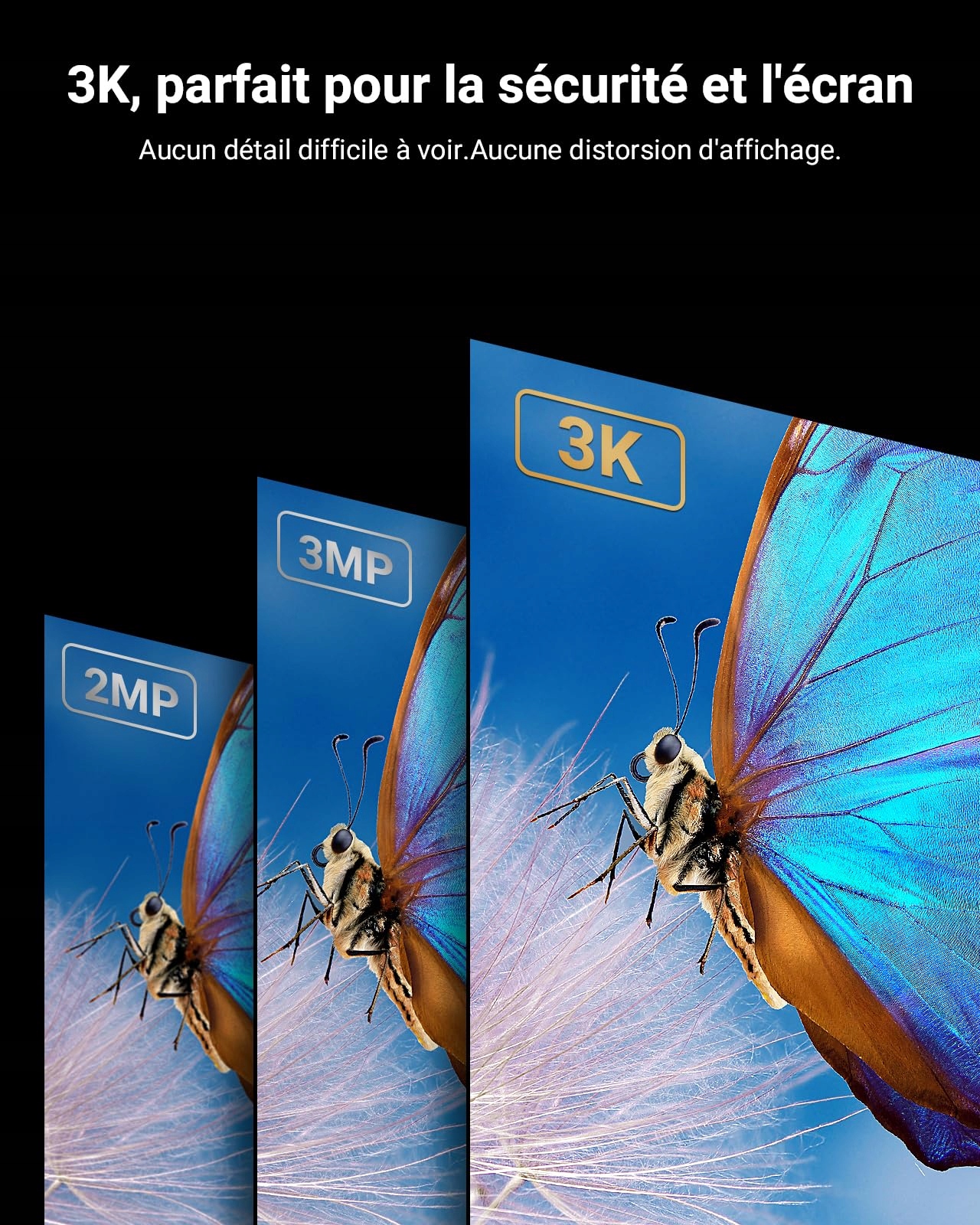Kamera 3K z wbudowanym mikrofonem: Ta kamera bezpieczeństwa wykorzystuje sensor obrazu CMOS 3K, aby dostarczać ostre filmy HD o rozdzielczości 2960×1665@20fps w proporcjach 16:9. Wbudowany mikrofon nagrywa czysty dźwięk, który można w razie potrzeby łatwo wyłączyć w menu.