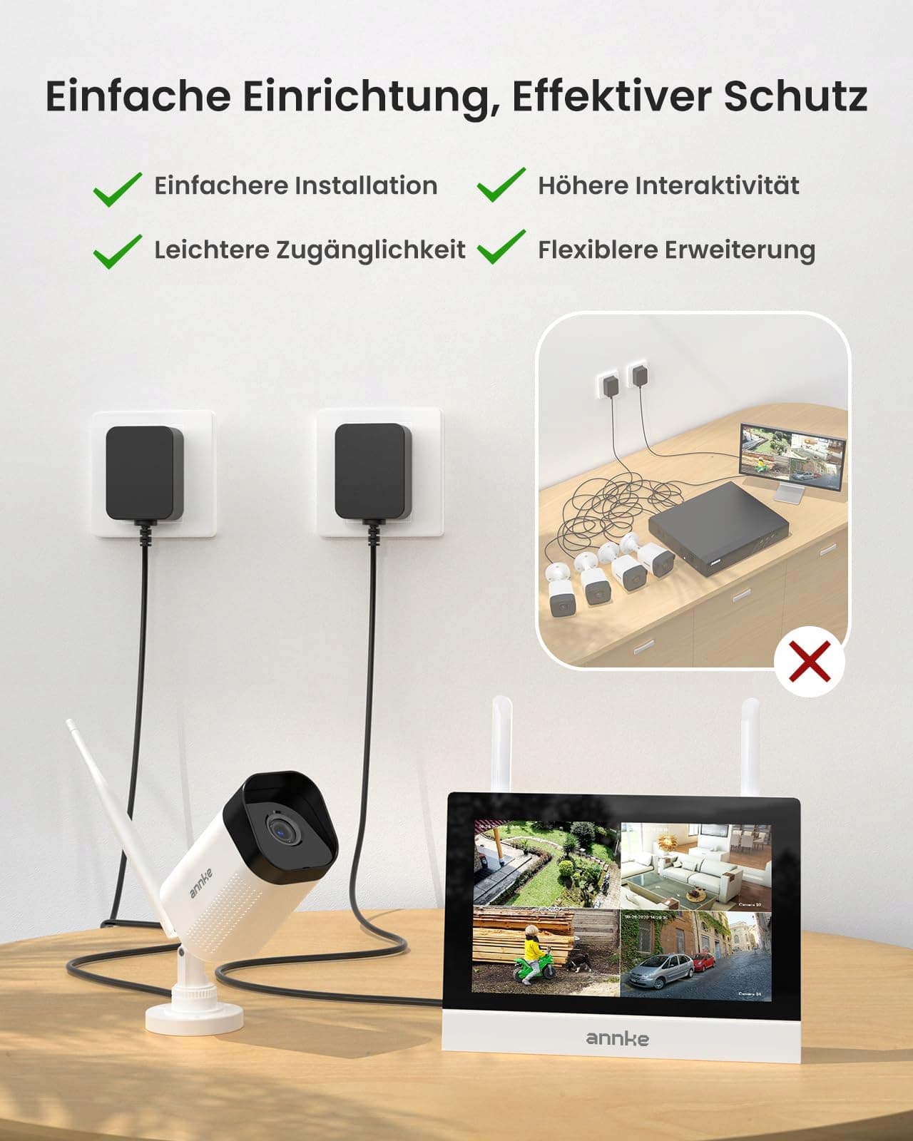 【Jedno kliknięcie do słuchania, mówienia i konfiguracji】Rozmowy na żywo dzięki wygodnej funkcji dwukierunkowego audio w bezprzewodowym zestawie kamer ANNKE. Personalizuj swój obszar nagrywania i chroń wrażliwe pomieszczenia poprzez proste ręczne blokowanie. Wszystko, czego potrzeba, to kilka prostych kliknięć.