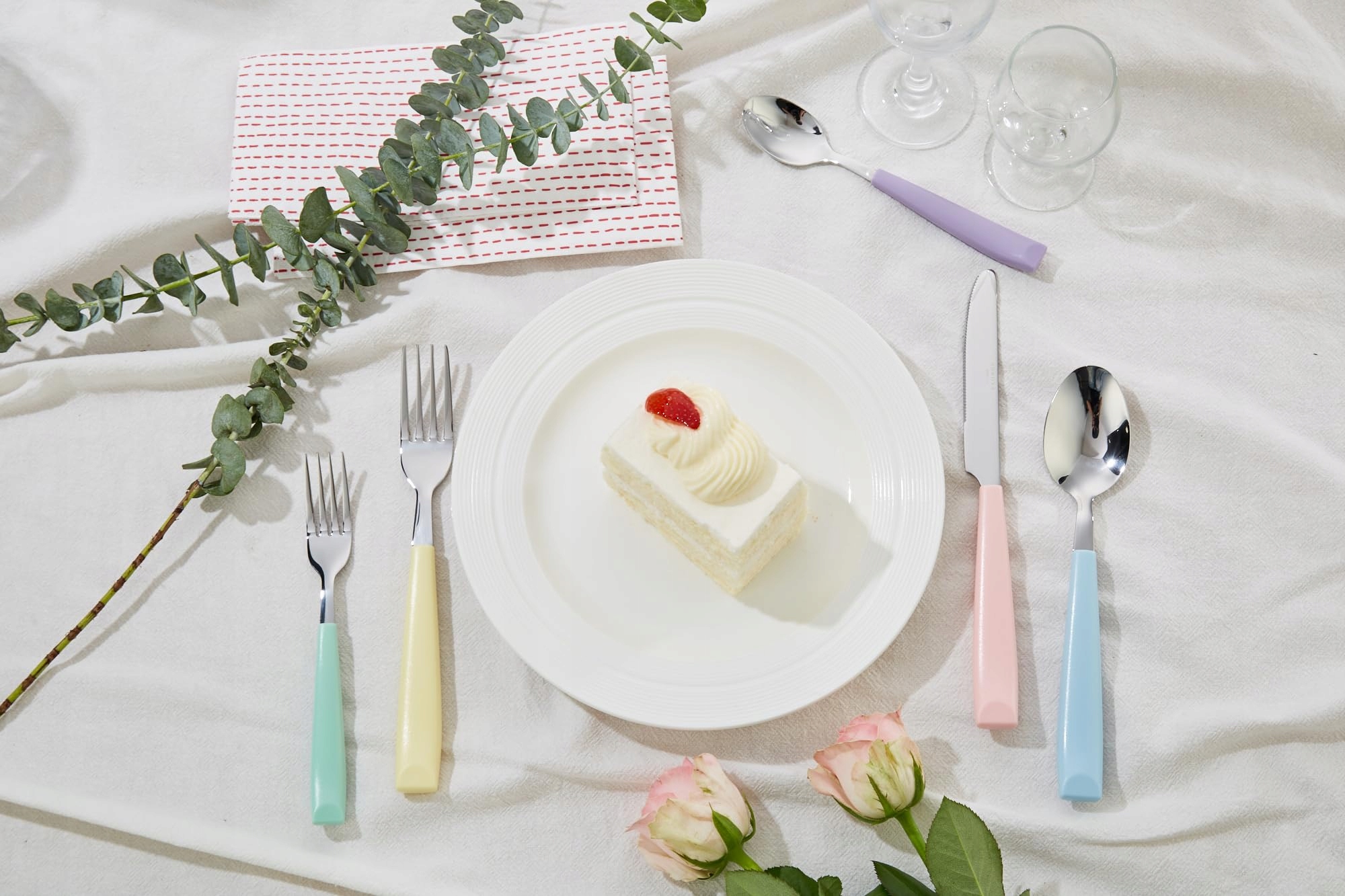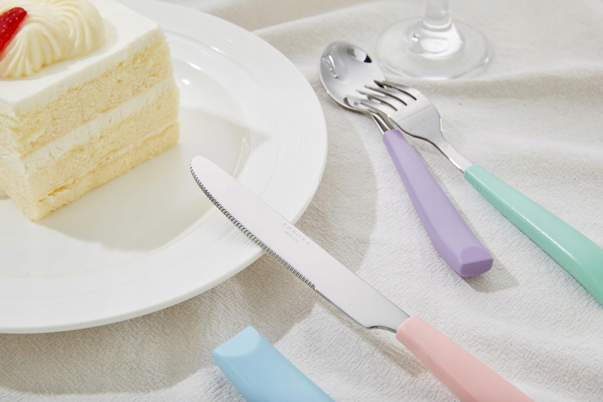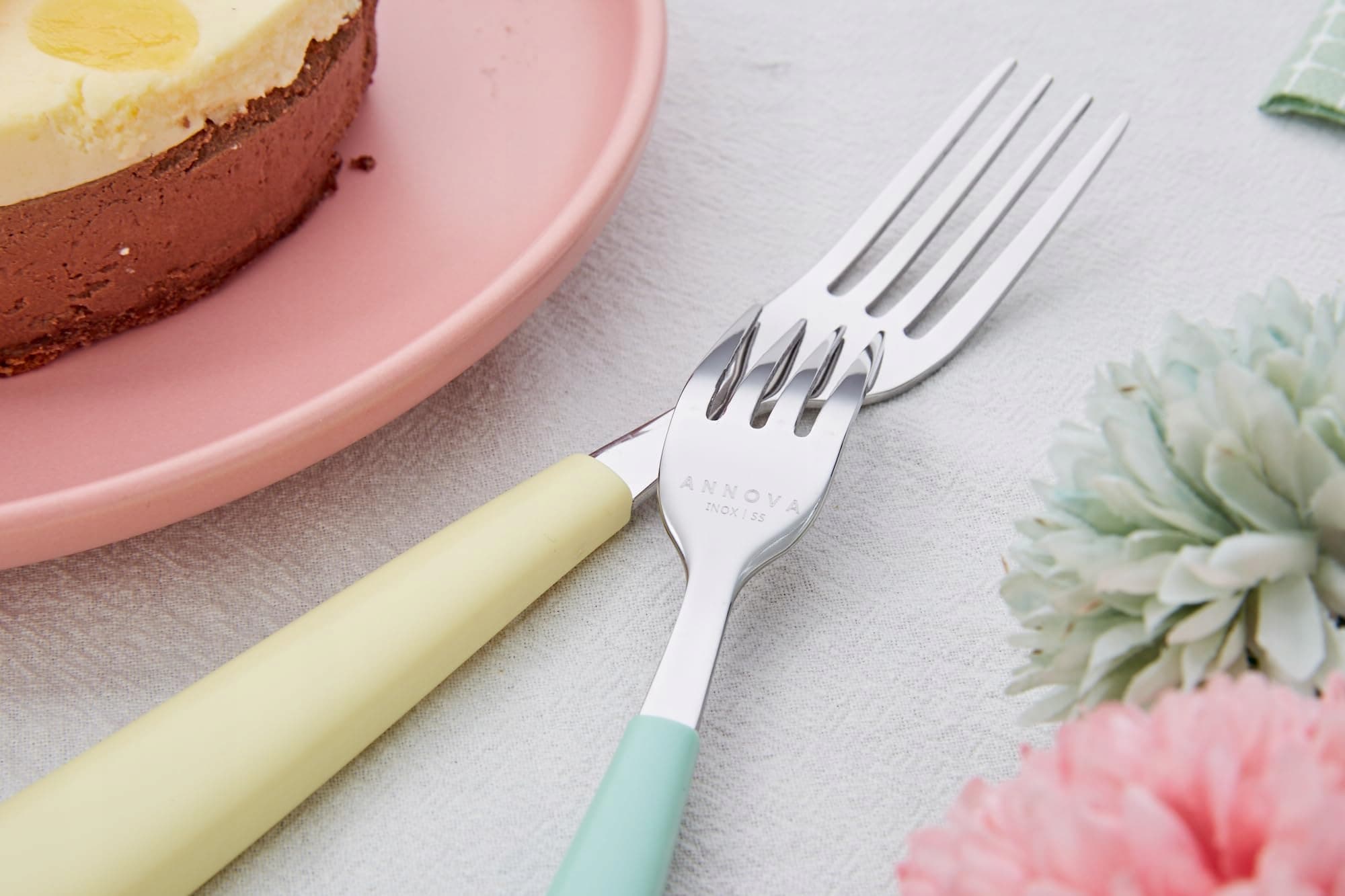 Annova 20-częściowy zestaw sztućców ze stali nierdzewnej – kolorowe rączki – 4 x widelce do dań głównych, 4 x widelce do sałatek, 4 x noże do dań głównych, 4 x łyżki stołowe, 4 x łyżeczki – zestaw dla 4 osób (pastelowy mix)
