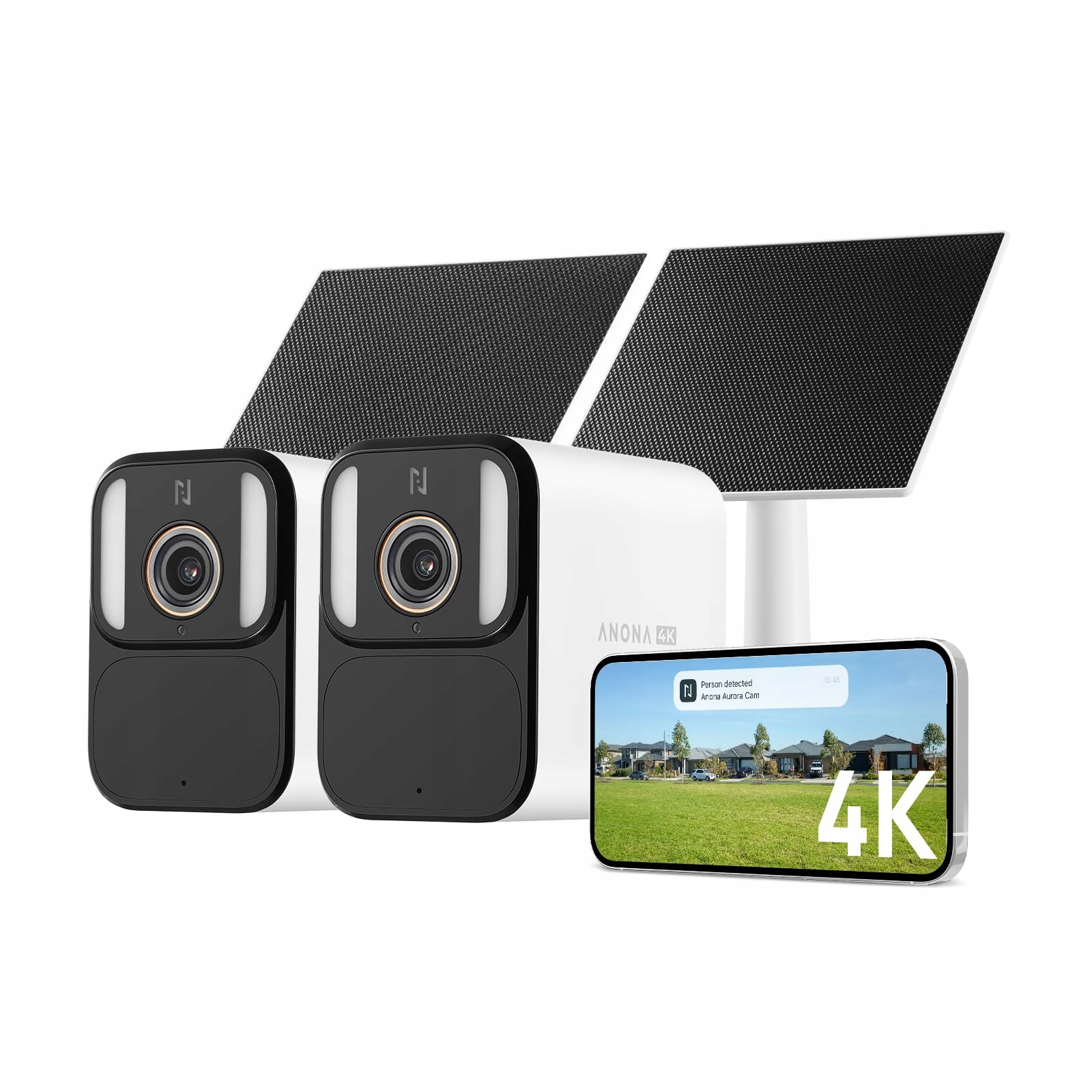 Anona Aurora 4K Solarna kamera do monitoringu z akumulatorem na zewnątrz, bezprzewodowa, 8MP kolorowy tryb nocny, całodobowy zapis AOV, wykrywanie AI, automatyczne śledzenie, brak opłat miesięcznych, IP67