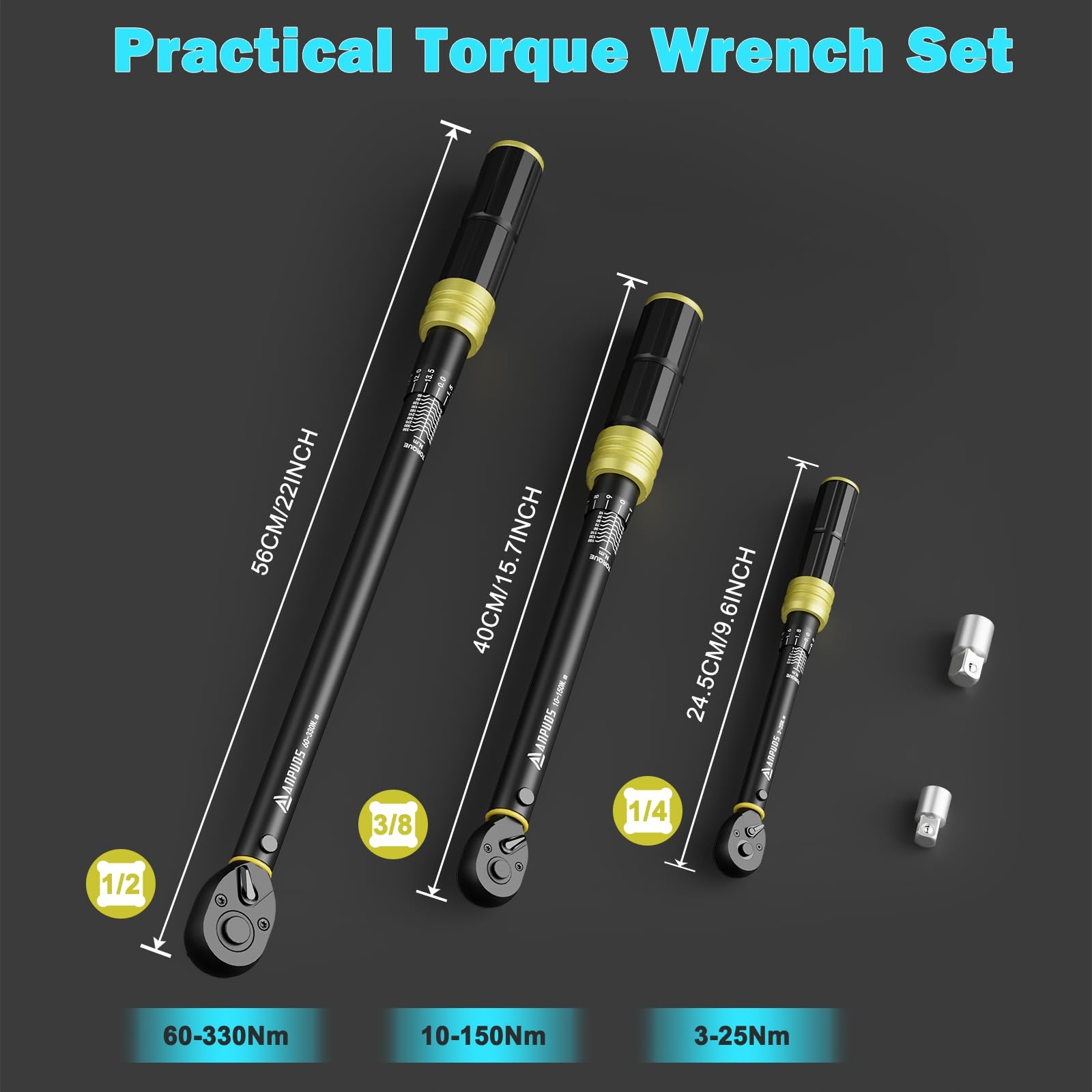 ANPUDS Zestaw Kluczy Dynamometrycznych 1/4 3/8 1/2 Do Roweru i Samochodu | Premium Supply
