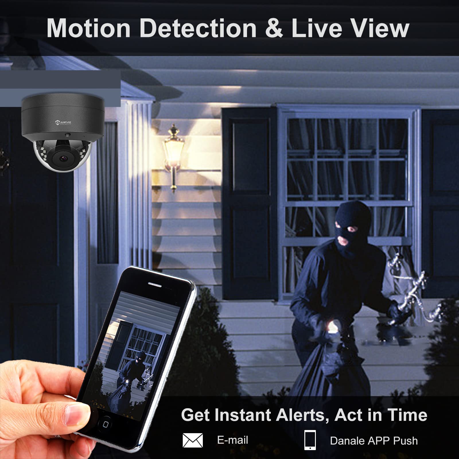 Anpviz 5MP POE IP Kamera Kopułkowa na zewnątrz z audio/mikrofonem, obiektyw 2,8 mm kąt 110°, 30m IR nocne widzenie, wodoodporna IP66, wykrywanie ruchu, zdalny dostęp, IPC-D250G-S(seria U)