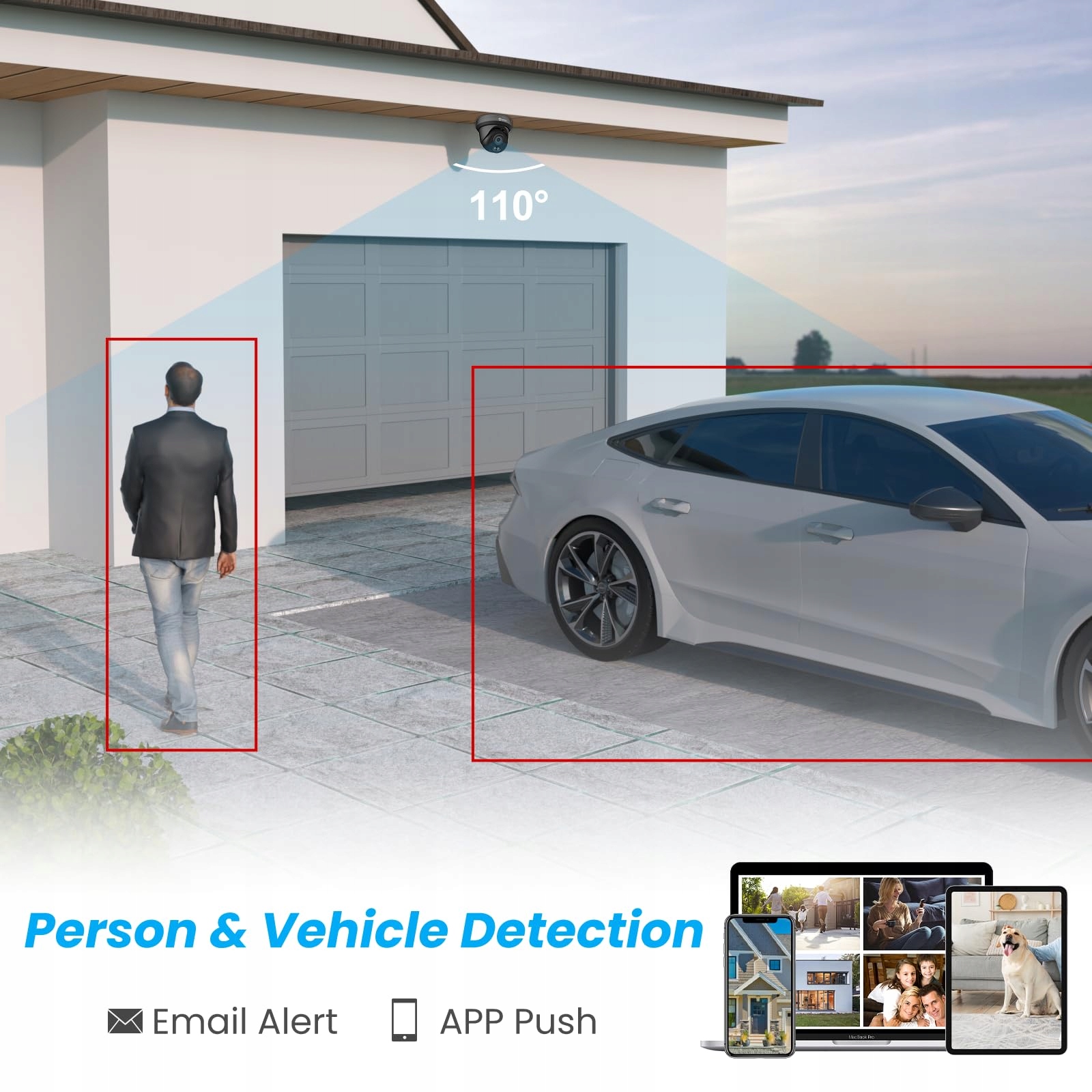 Wykrywanie osób i pojazdów: Zaawansowana technologia AI tej 4K PoE kamery monitorującej rozpoznaje osoby/pojazdy i wysyła powiadomienia na Twój telefon lub skrzynkę mailową. Niepotrzebne alerty, takie jak poruszające się liście czy małe latające owady, są filtrowane, co pozwala zaoszczędzić czas i energię.