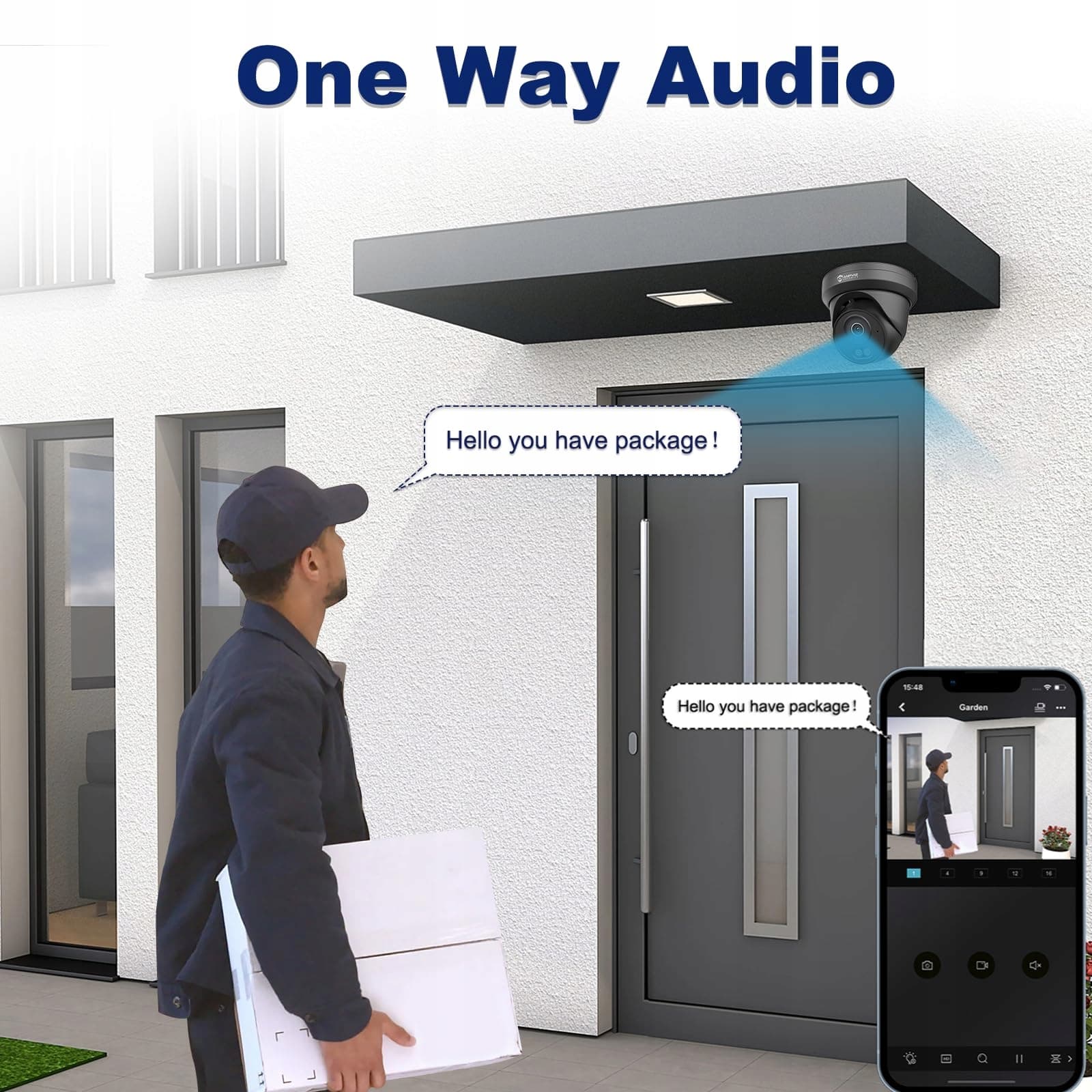 Całodobowy zapis i jednokierunkowe audio: Doświadcz ciągłego nagrywania 24/7 z 8MP PoE kamerami IP Anpviz. Wbudowany mikrofon nadaje się zarówno do użytku wewnętrznego, jak i zewnętrznego i rejestruje krystalicznie czysty dźwięk, dzięki czemu jesteś informowany o dźwiękach w pobliżu kamery monitorującej na zewnątrz. Dzięki jednokierunkowemu audio możesz łatwo i spokojnie nadzorować swoją własność.