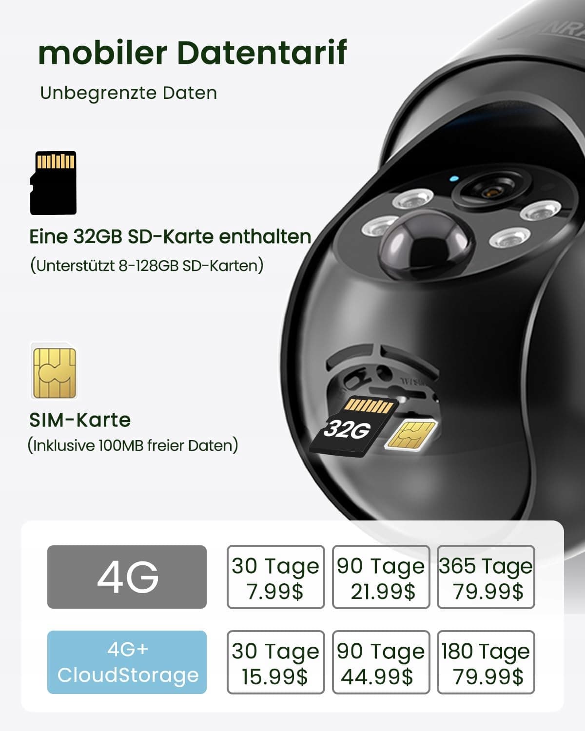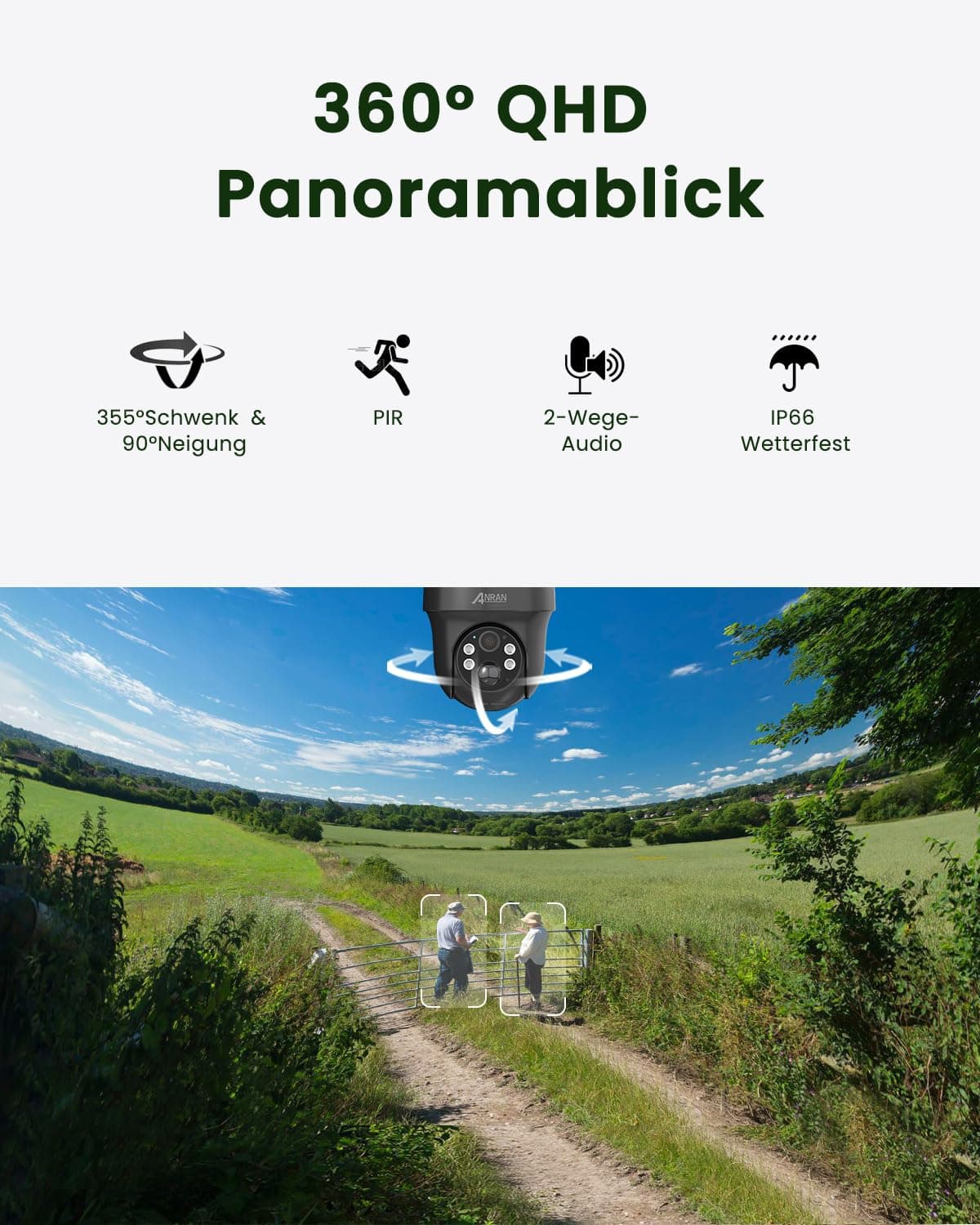 ANRAN 2K 4G LTE Kamera monitoringu zewnętrznego, bez WLAN, z kartą SIM, 360° PTZ kamera solarna na zewnątrz z kolorowym trybem nocnym, detekcją PIR, w zestawie karta SD 32GB, dwukierunkowe audio, IP66, kompatybilna z Alexa