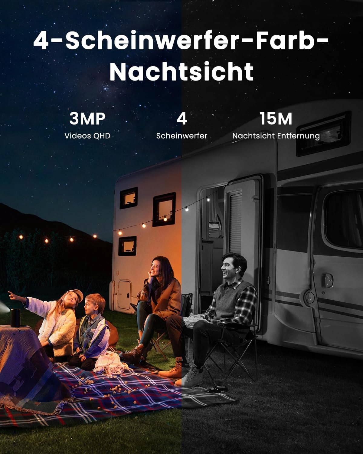 𝟮𝗞 𝗿𝗼𝘇𝗱𝗶𝗲𝗹𝗰𝘇𝗼𝘀́𝗰 𝗛𝗗, 𝗰𝗳𝗿𝗮𝗻𝗼-𝗯𝗶𝗮𝗹𝗲/𝗸𝗼𝗹𝗼𝗿𝗼𝘄𝘆 𝗻𝗼𝗰𝗻𝘆 𝘄𝘇𝗿𝗼𝗸 𝗜𝗥: Kamera ma rozdzielczość 2K HD i jest wyposażona w cztery białe światła oraz światło podczerwone. Dzięki temu kamera zapewnia wyraźny obraz nie tylko w dzień, ale można ją także ustawić na tryb nocny w czerni i bieli lub w kolorze.