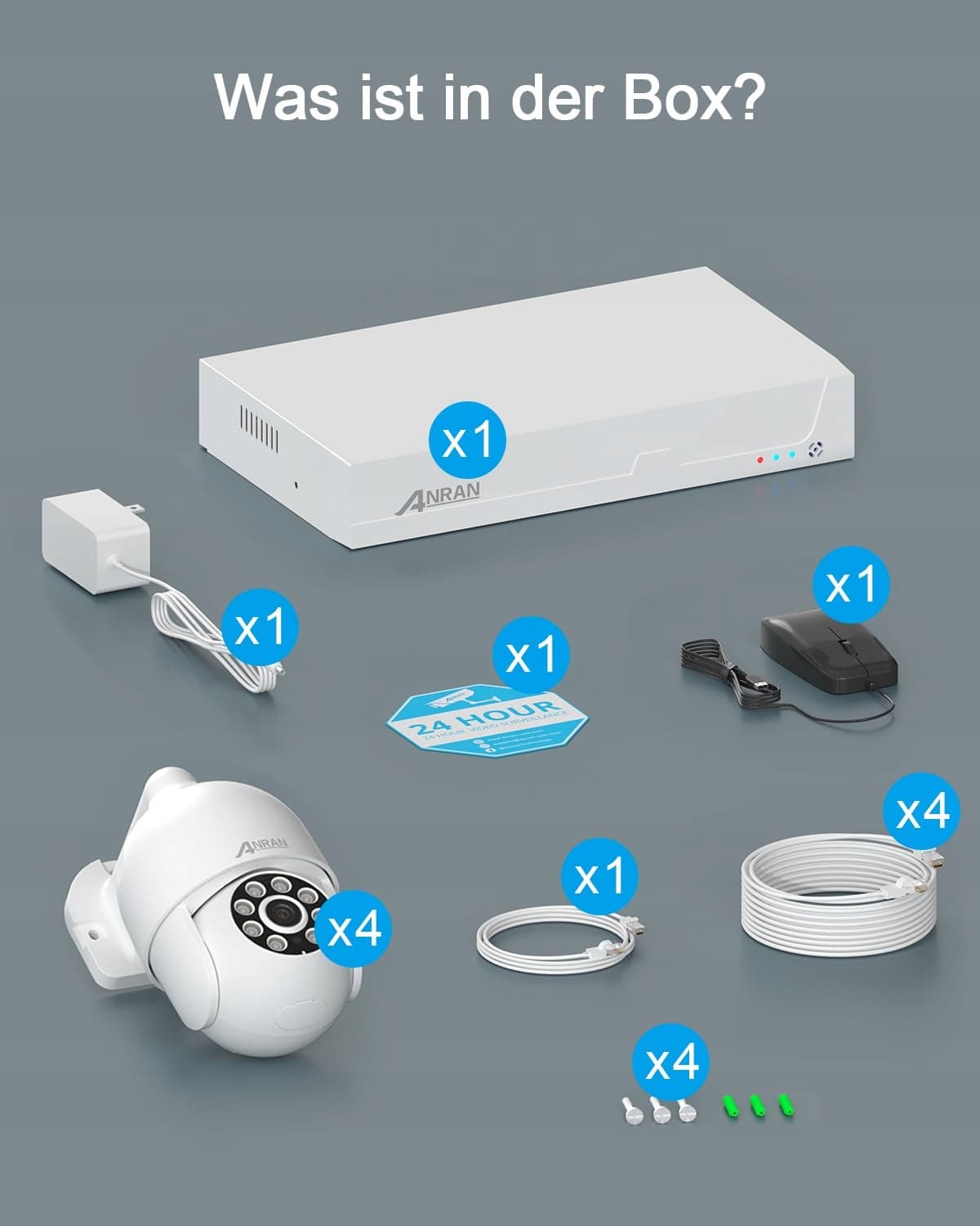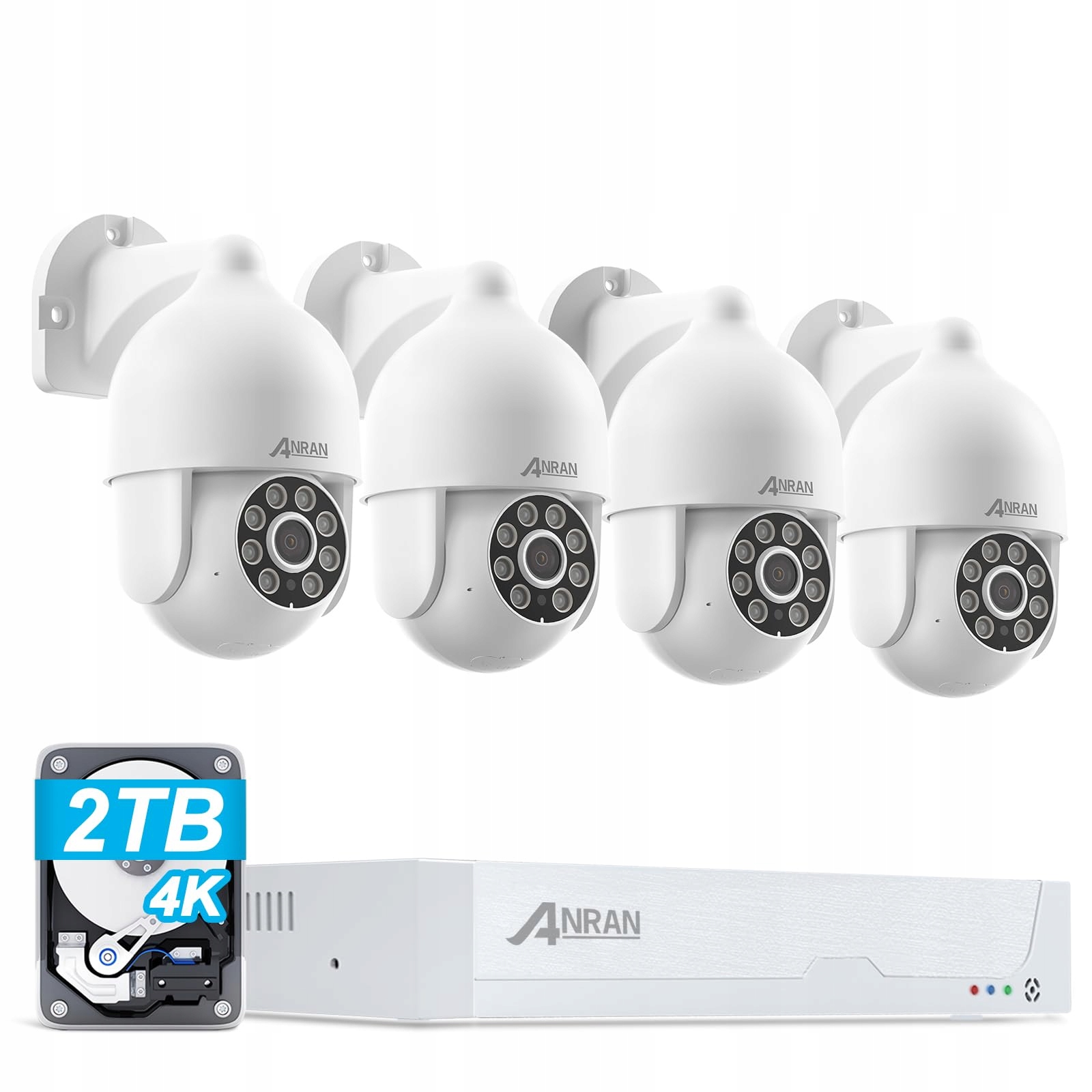 ANRAN 4K UHD PoE Zestaw kamer do monitoringu zewnętrznego, 8-kanałowy NVR z dyskiem 2TB do nagrywania 24/7, 4x 8MP PoE IP kamera z automatycznym śledzeniem, 30M widzenie w nocy, kamera PTZ obracana o 360°