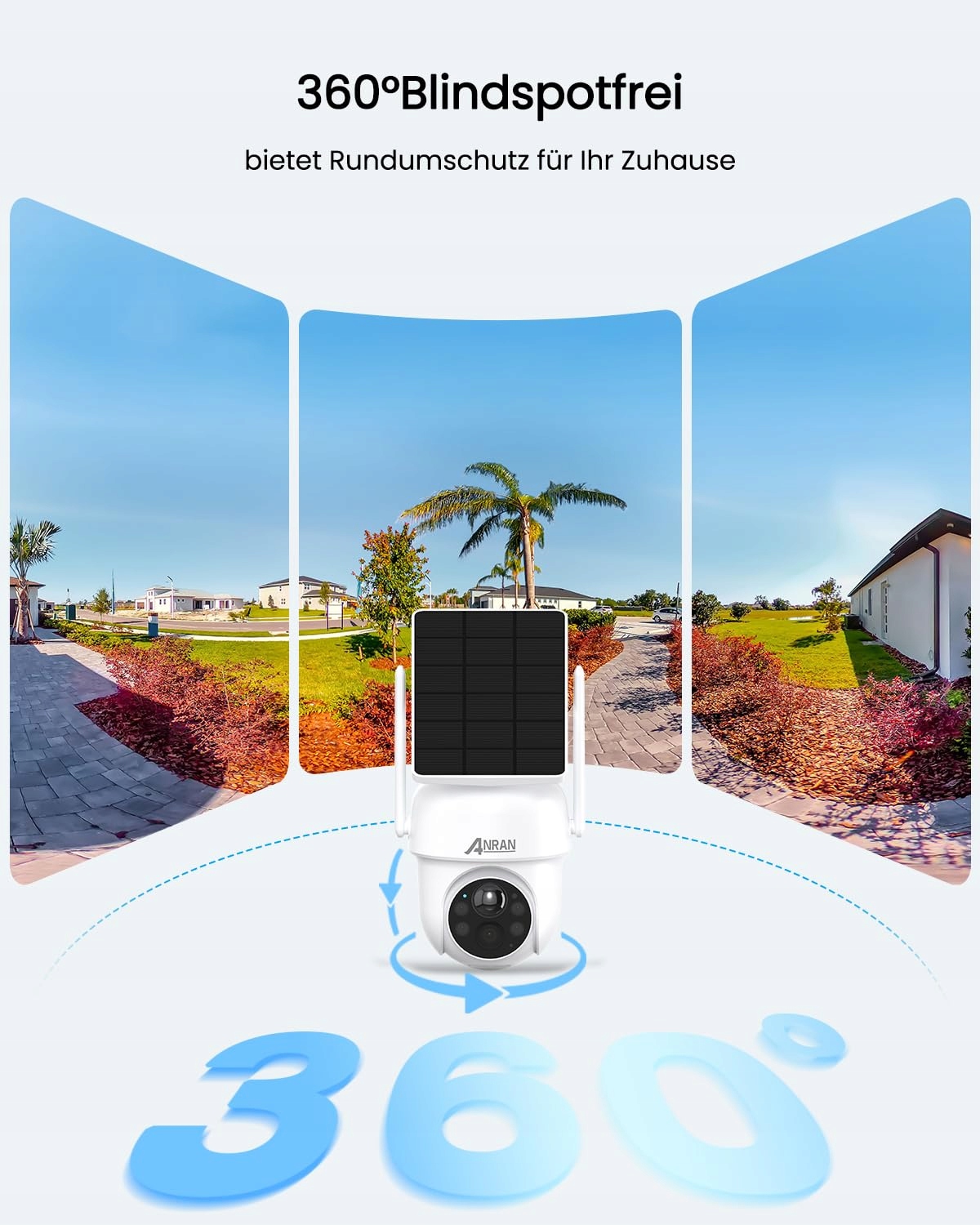 ANRAN 5MP Kamera monitoringu zewnętrznego na zewnątrz Solar Wi-Fi, 360° PTZ Kamera monitoringu zewnętrznego z bezprzewodowym panelem solarnym, kolorowe widzenie nocne i dwukierunkowe audio, wykrywanie PIR i inteligentny alarm, IP66, kompatybilna z Alexa 2 sztuki