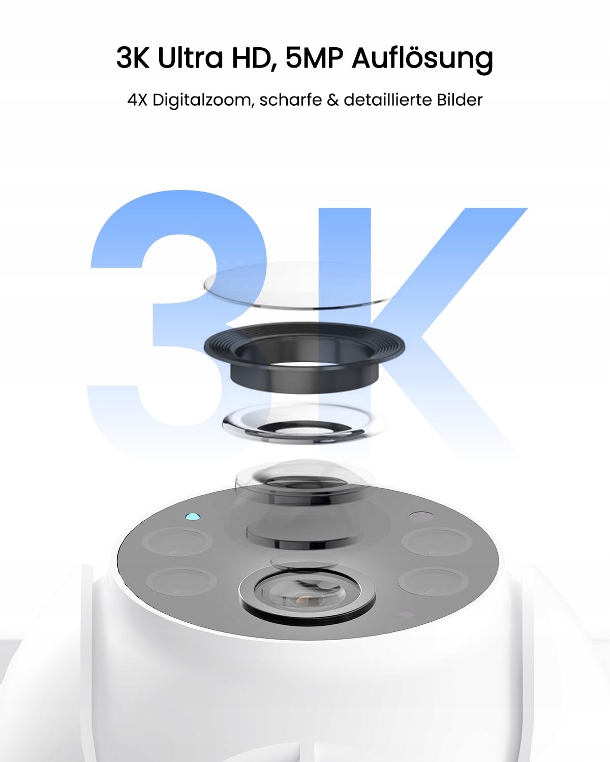 𝟱𝗠𝗣 𝗦𝘂𝗽𝗲𝗿 𝗛𝗗 𝗿𝗼𝘇𝗱𝗶𝗲𝗹𝗰𝘇𝗼𝘀́𝗰, 𝗱𝗻𝗶𝗲 𝗶 𝗻𝗼𝗰: Kamera jest wyposażona w obiektyw o rozdzielczości 5 MP HD oraz cztery reflektory, które zapewniają wyraźny obraz nie tylko w ciągu dnia, ale także nocą w jakości HD do 15 metrów. Dzięki temu nie umknie Ci żaden szczegół.