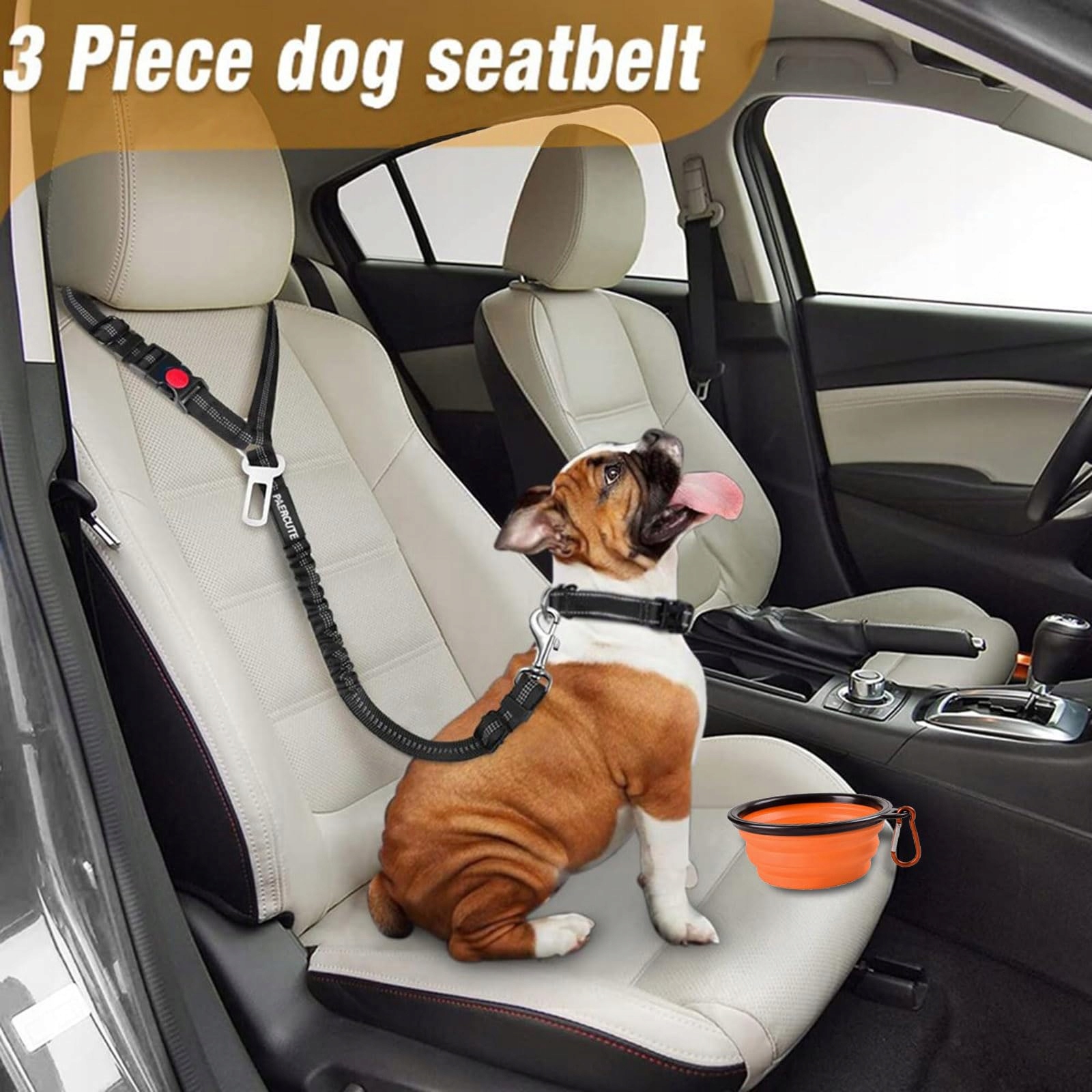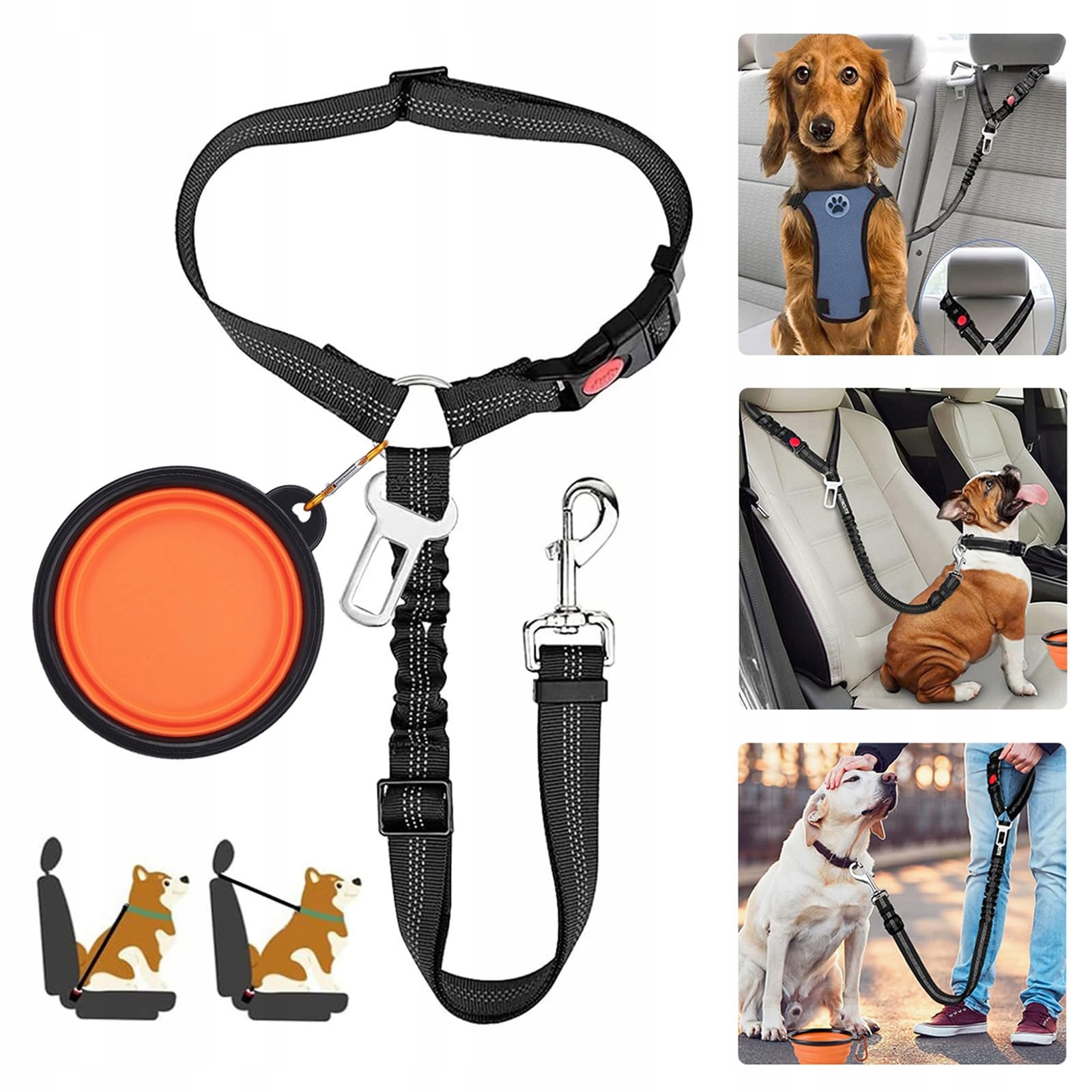 [Kombinacja 1+1]Ten zestaw akcesoriów dla psa zawiera pas bezpieczeństwa dla psa i miskę dla psa, użyte materiały i design są przyjazne dla zwierząt