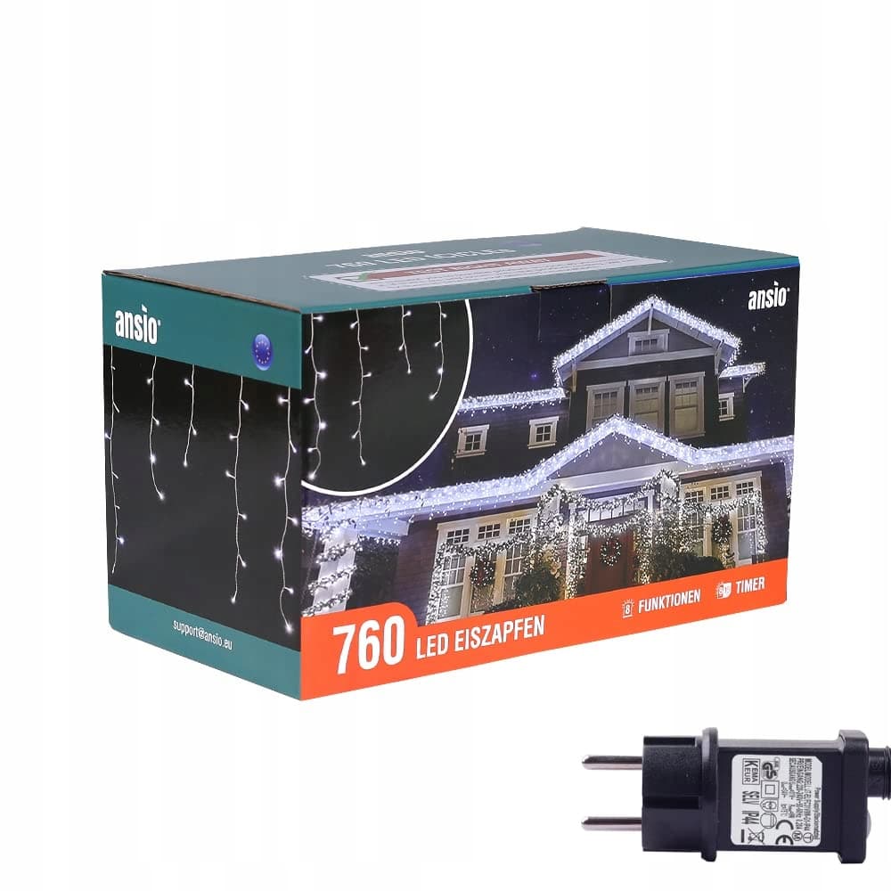ANSIO Lampa Led Zewnętrzna 26m 760 LED Na Balkon Święta Kaltweiß | Premium Supply