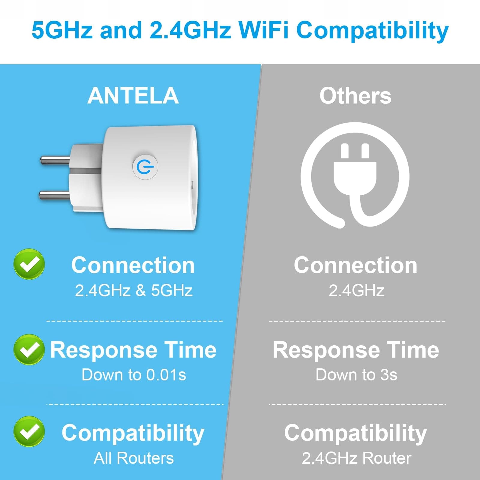 ANTELA WLAN Smart Gniazdko Alexa 2,4/5GHz, z pomiarem energii, kompatybilne z Google Home, Smart Life APP, 2 sztuki