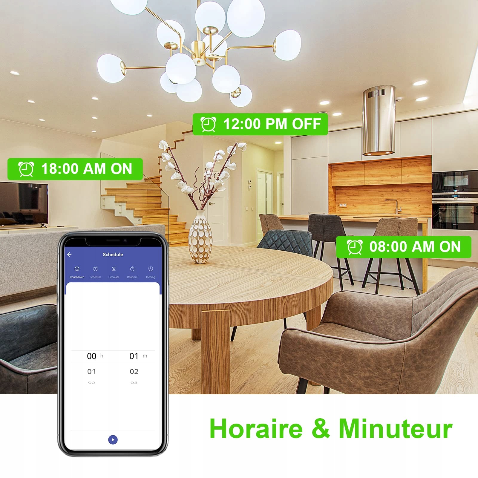 【Sterowanie aplikacją】 Pobierz aplikację Smart Life lub Tuya Smart, aby połączyć się z WiFi 2,4 GHz. (5 GHz nie jest obsługiwane) Możesz jednocześnie sterować wieloma inteligentnymi gniazdkami.