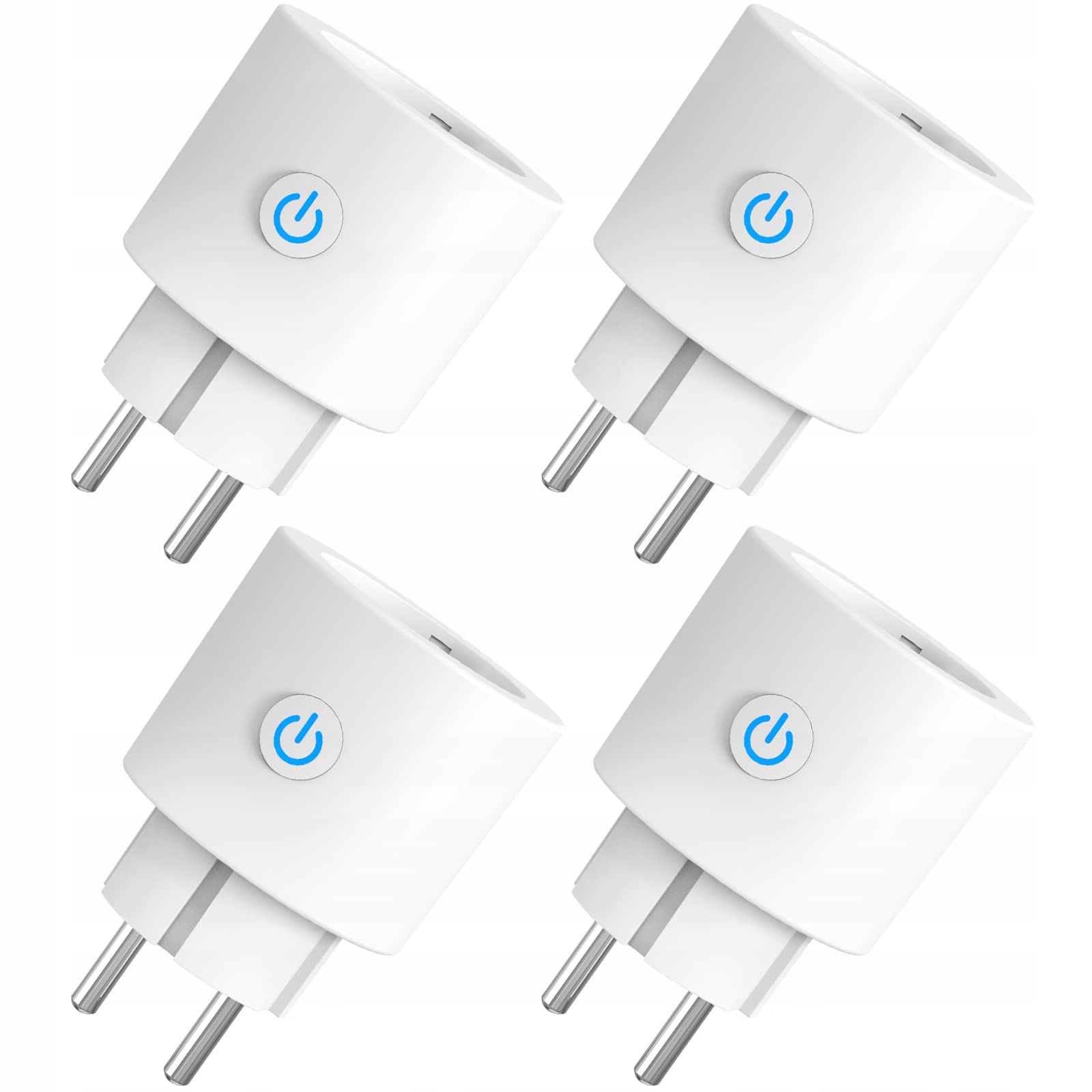ANTELA WLAN Smart Gniazdko z pomiarem energii, Gniazdko Smart Home kompatybilne z Alexa/Google Home, Pomiar zużycia energii, Sterowanie głosowe, Zdalne sterowanie APP, 2,4GHz, 16A, 4 sztuki