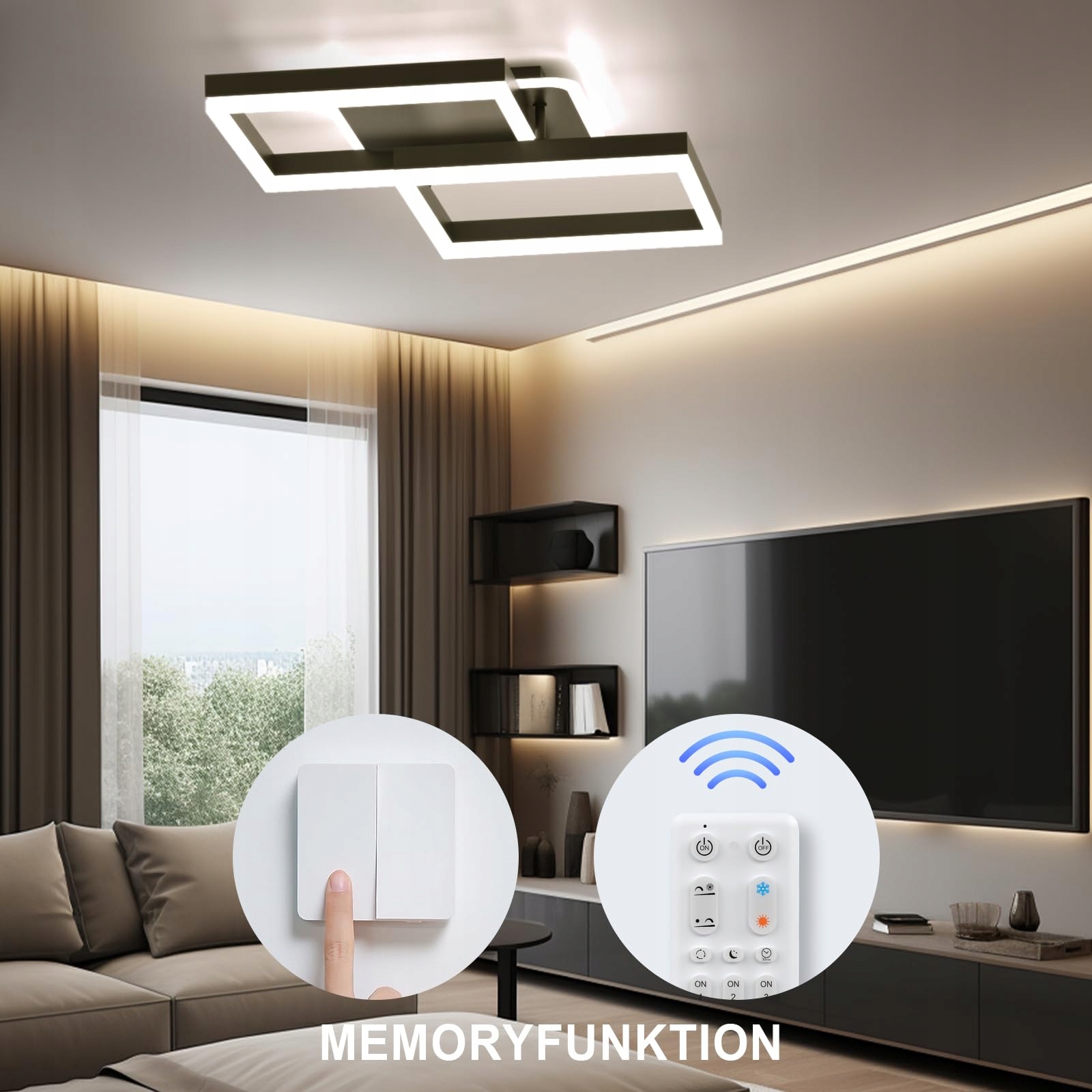 FUNKCJA PAMIĘCI: Ta ściemniana lampa sufitowa LED posiada inteligentną funkcję pamięci. Ustaw jasność/temperaturę barwową i poczekaj 10 sekund. Następnie wyłącz ją i po 10 sekundach włącz ponownie. Światło automatycznie zapamiętuje poprzedni kolor i jasność.