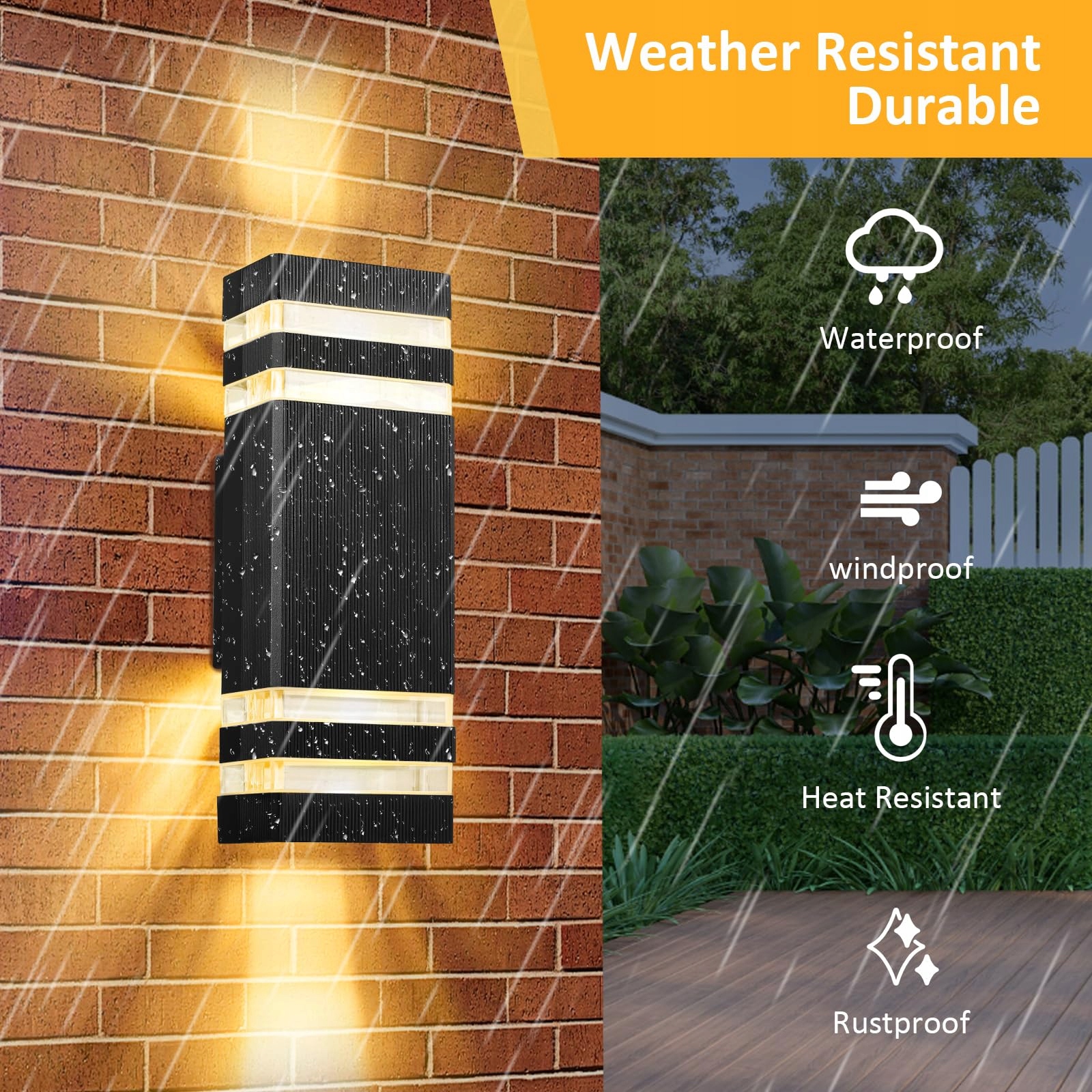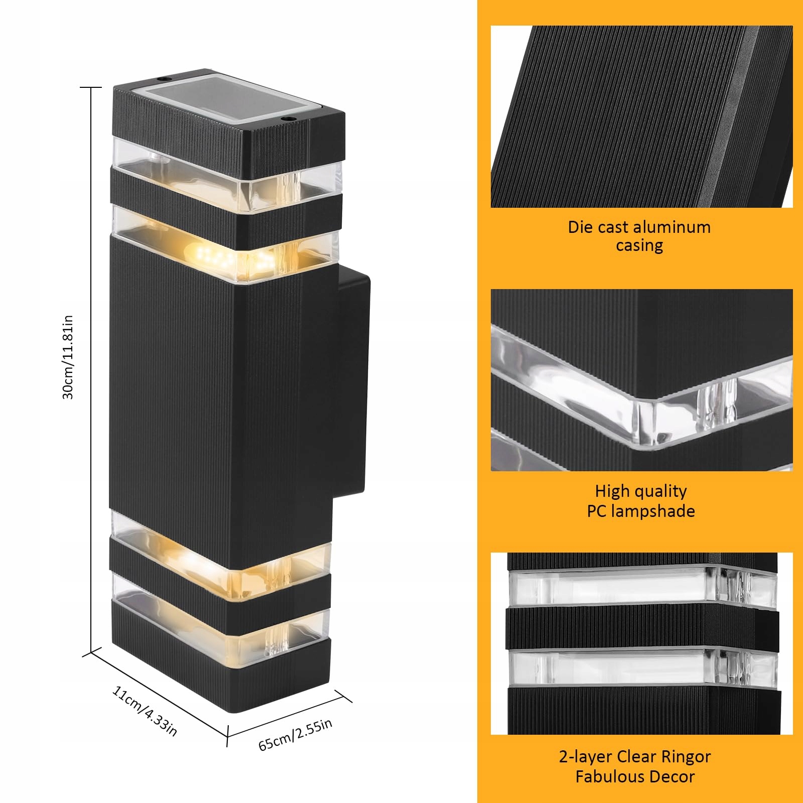 【Oprawka GU10】Zewnętrzna lampa ścienna jest wyposażona w 2 lampy LED GU10, co pomaga zaoszczędzić do 80% kosztów energii i ma średnią żywotność 25 000 godzin. Dodatkowo można wymienić lampy GU10 na inne żarówki GU10 (maksymalnie 2x50W), na przykład ściemnialne żarówki GU10, według potrzeb.