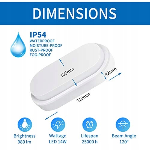 ANWIO 14W LED-lampa zewnętrzna kinkiet z 69 diodami LED owalna 4000K naturalna biel IP54 wodoodporna do ogrodu tarasu garażu korytarza piwnicy oranżerii - 1 sztuka